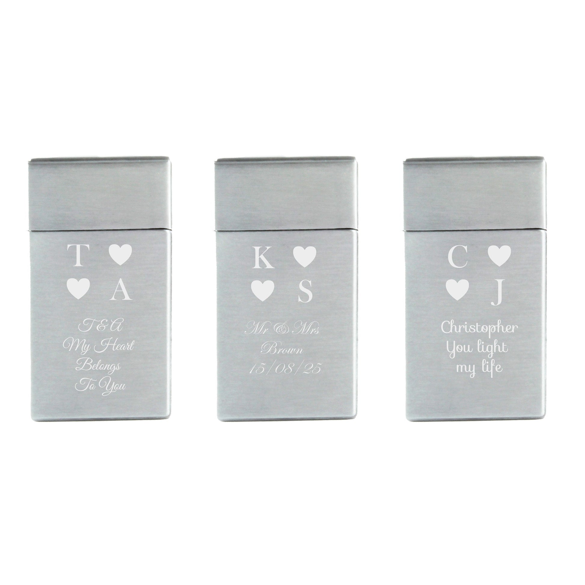 Engraved Jet Gas Lighter Silver Heart Initials Gift Boxed