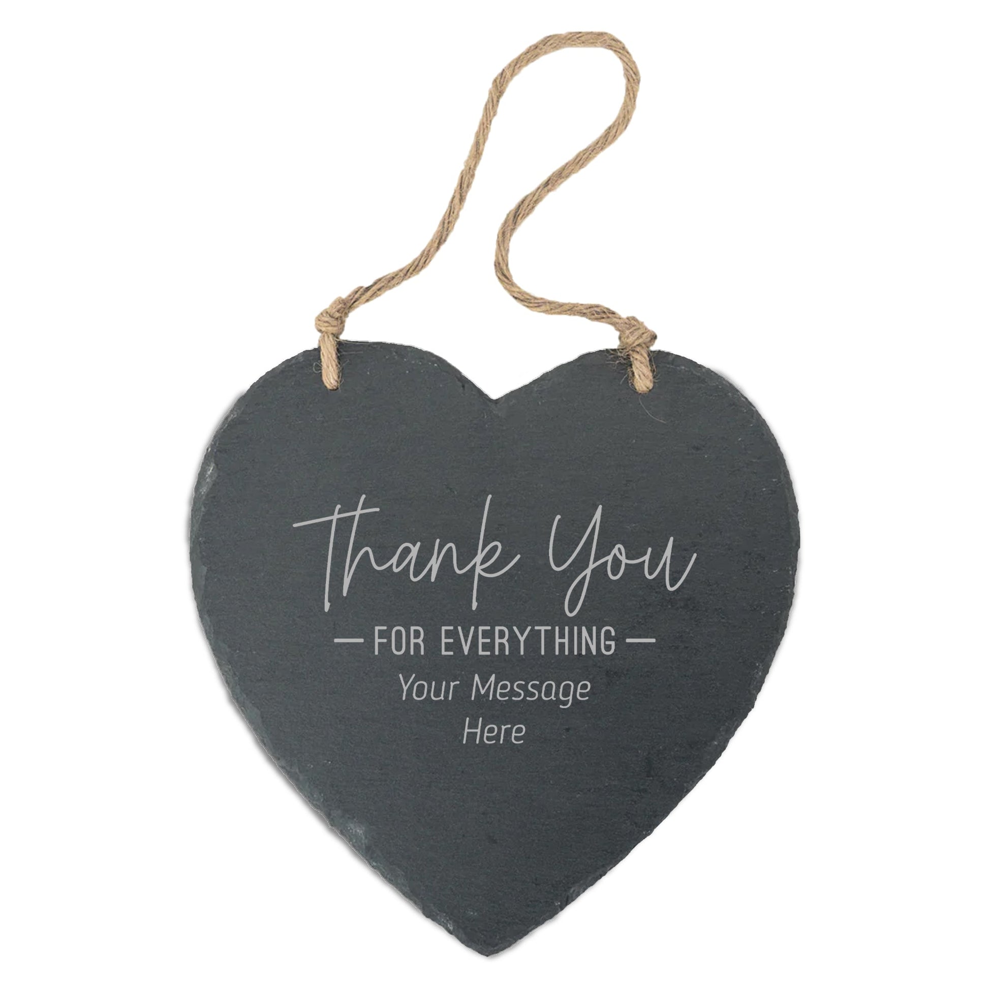 Engraved Large Hanging Heart Slate with Thank You for Everything Design