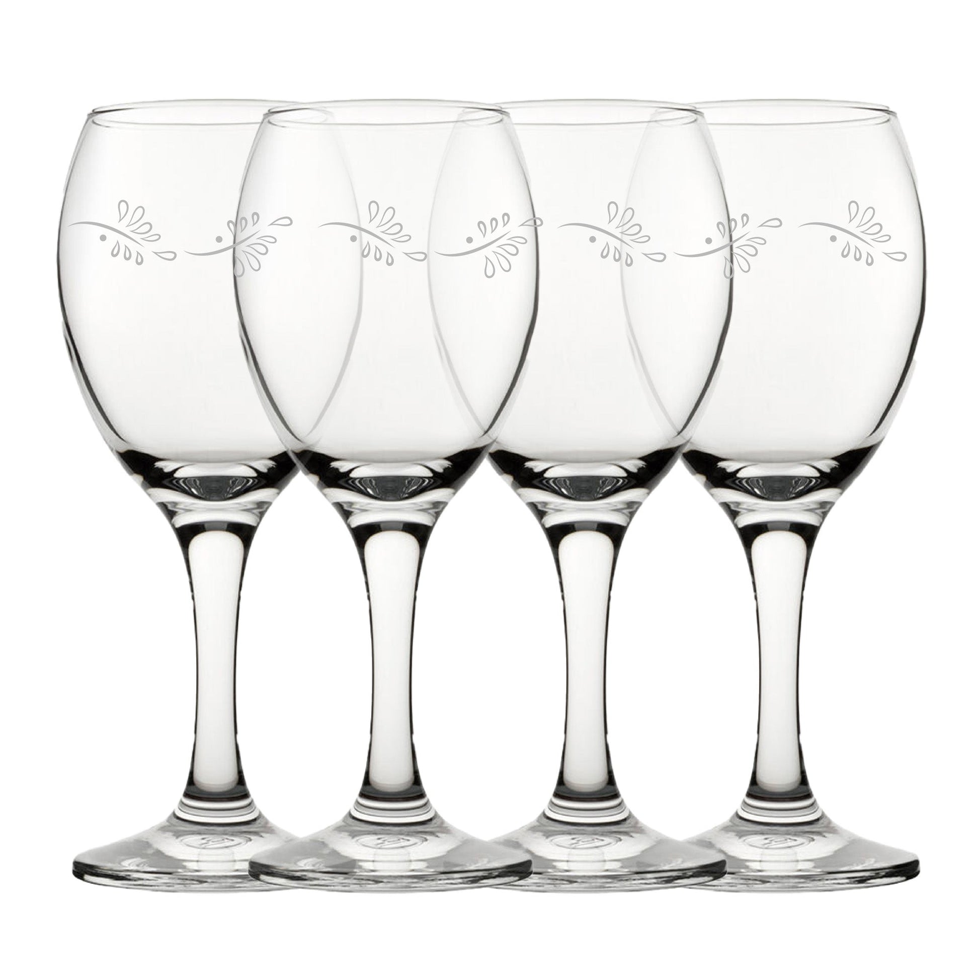 Engraved Leaves Pattern Pure Wine Set of 4 11oz Glasses
