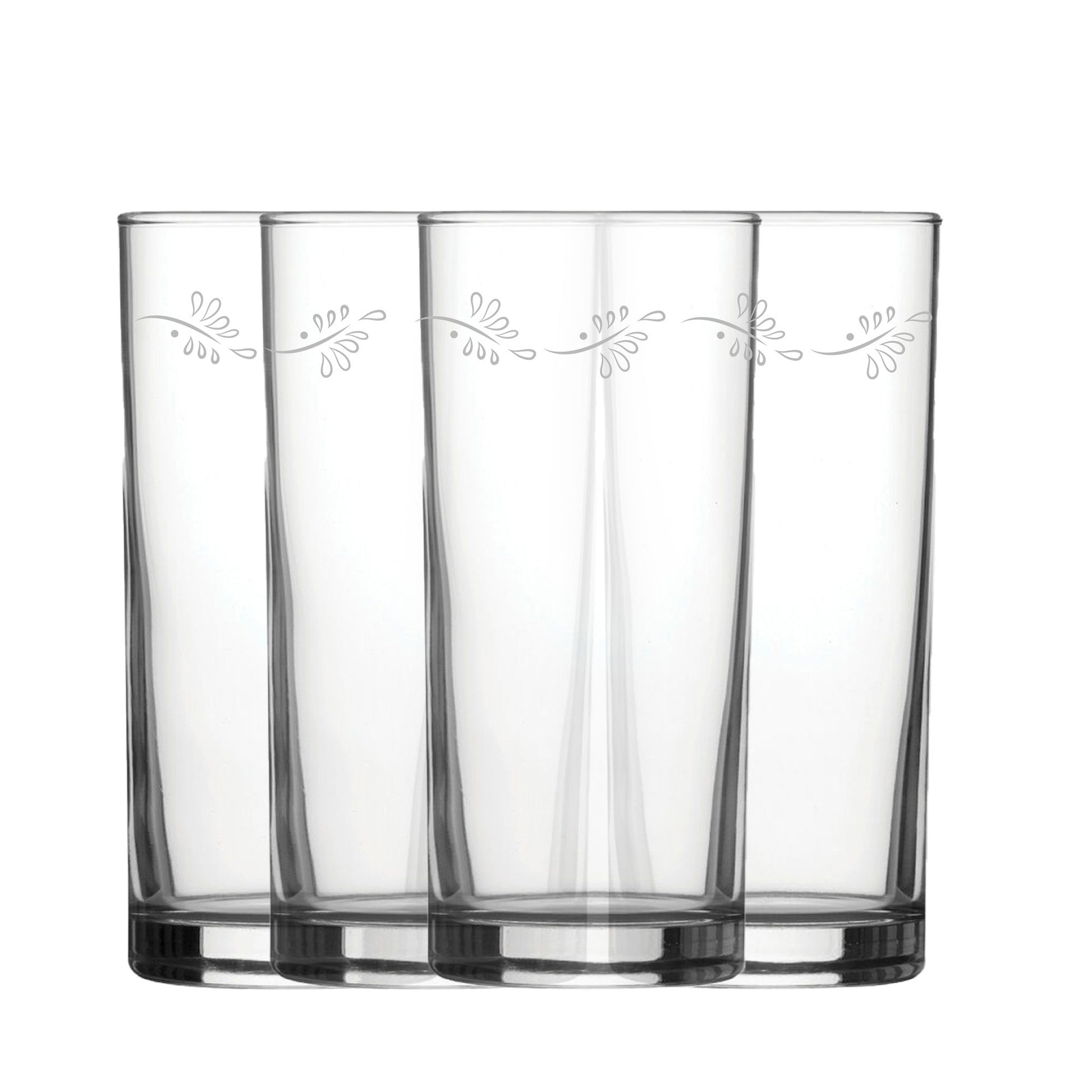 Decorate your glassware with this unique engraved set of four hiball glasses. The perfect practical gift for a new home or anyone who wants to spice up their kitchen cupboards. These glasses hold up to 12oz or 355ml, a great size for everyday use. All glasses are machine engraved and boxed in house ready to gift. Because these glasses are engraved, they are colourless and have a textured frosted look where the pattern is present. No need to worry about the pattern washing off as these glasses are dishwasher resistant and have a permanent engraved texture. We recommend washing before first use and between uses. Our glasses make the perfect practical gift that can spice up any kitchen cupboard and make great home decoration that is sure to impress guests. If you have any questions or inquires with your order, our friendly team will be happy to help. Looking for more engraved gifts? Visit our store for hundreds of unique engraved glasses, Lighters, Hipflasks, Tankards and much more!