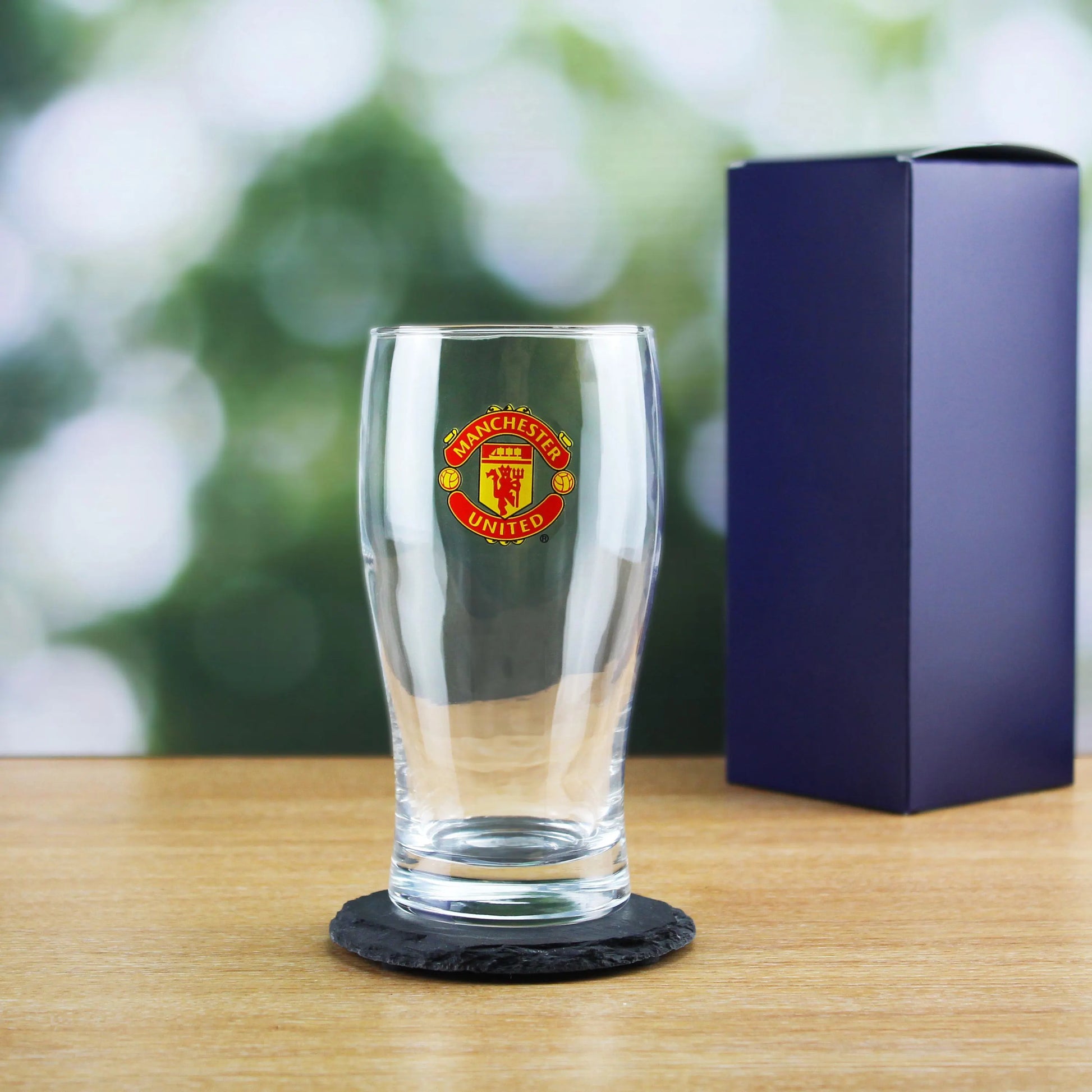 Engraved Manchester United 20oz Tulip Pint Glass, Gift Boxed
