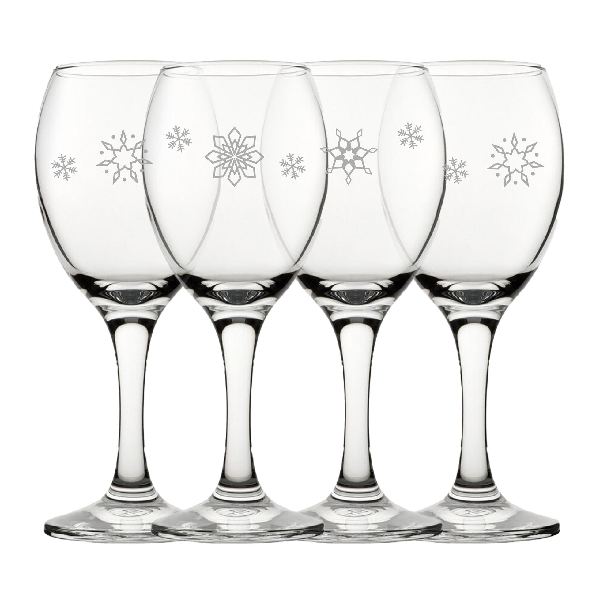 Engraved Snowflake Pattern Pure Wine Set of 4 11oz Glasses
