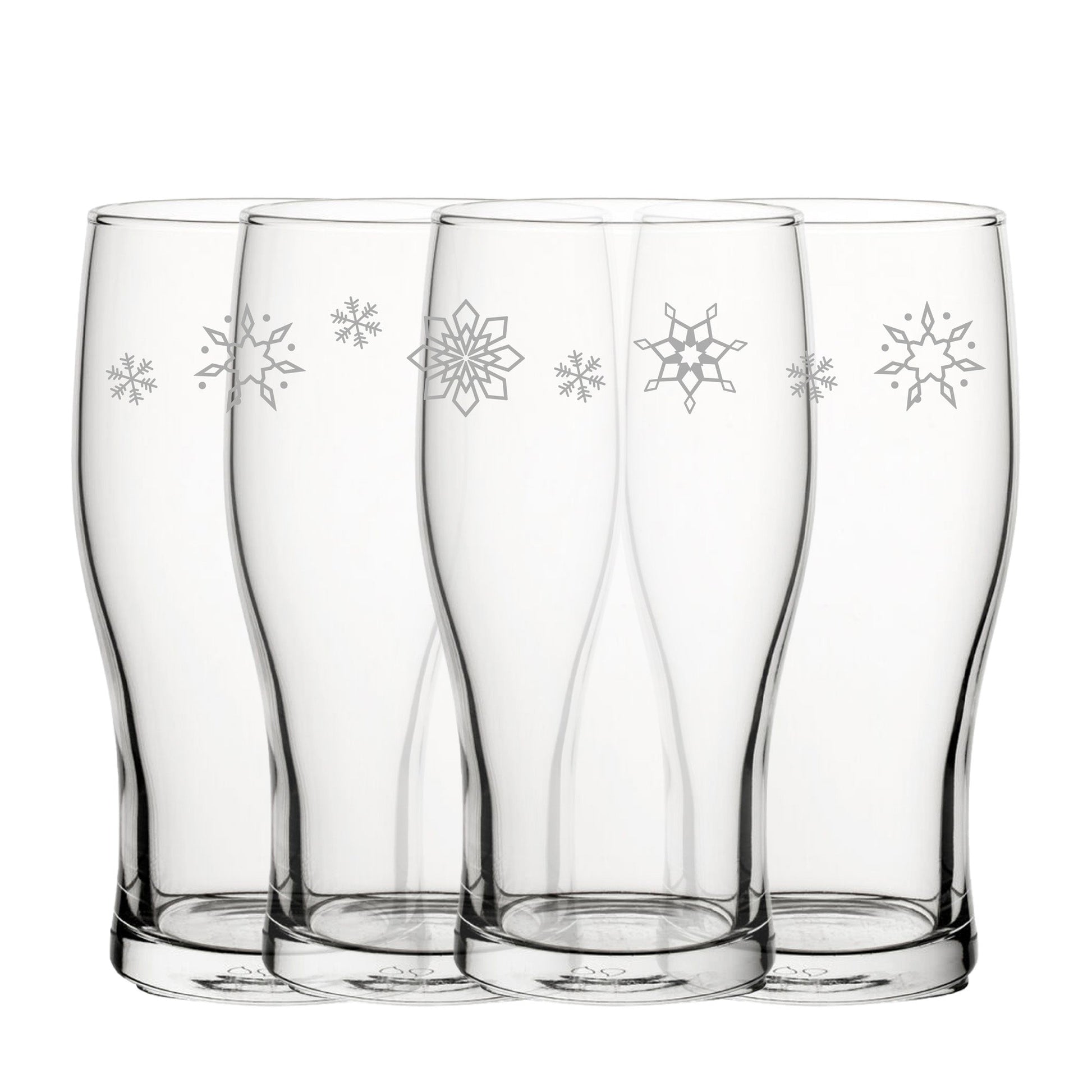 Engraved Snowflake Pattern Tulip Pint Glass Set of 4 20oz Glasses