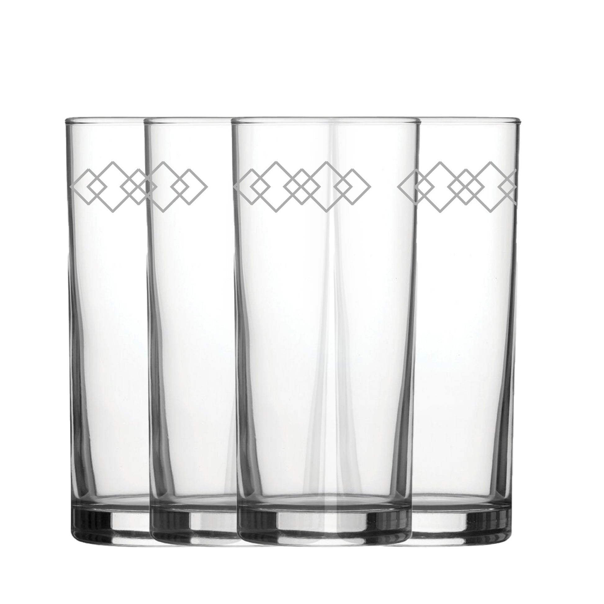 Engraved Squares Set of 4 Patterned Hiball 12oz Glasses