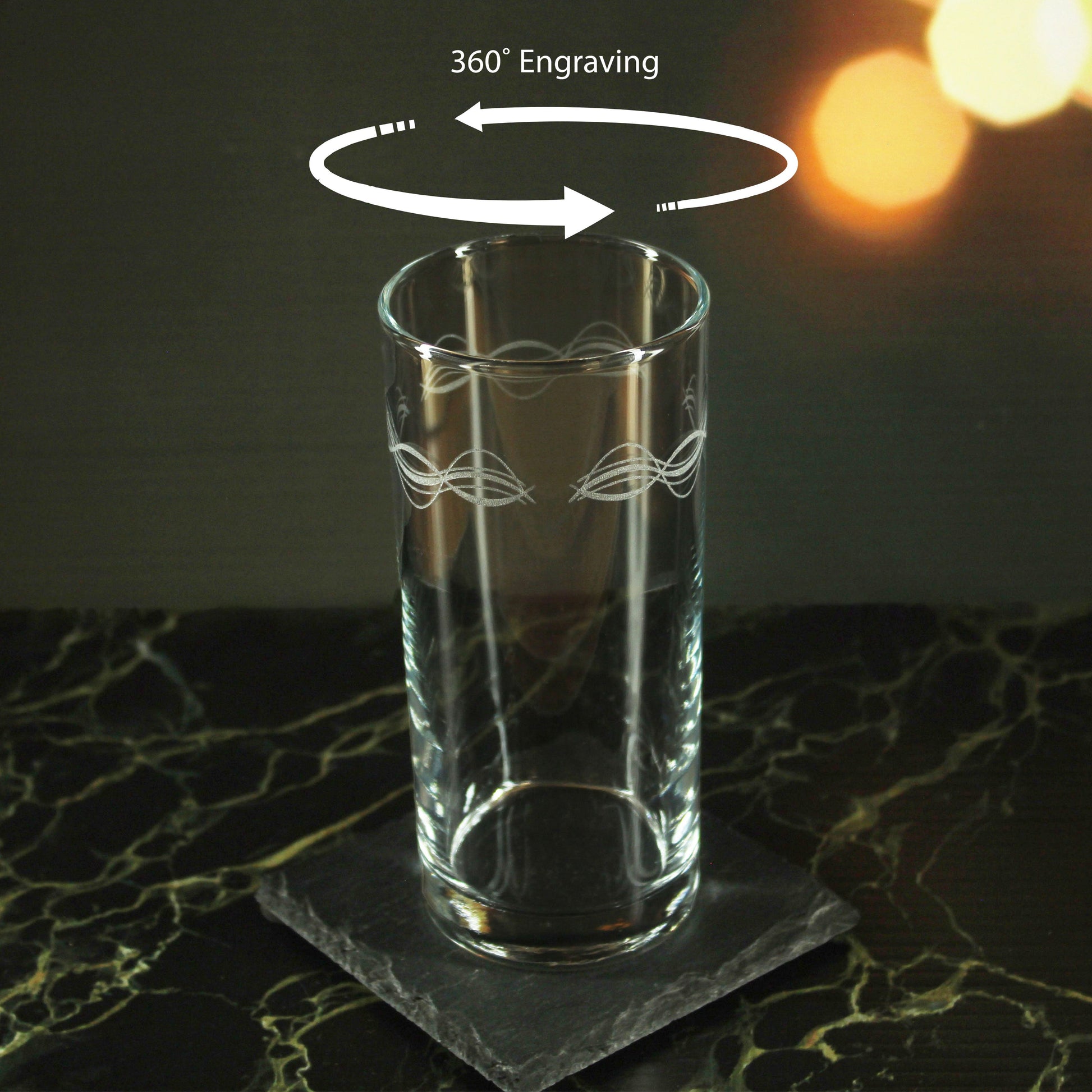 Decorate your glassware with this unique engraved set of four hiball glasses. The perfect practical gift for a new home or anyone who wants to spice up their kitchen cupboards. These glasses hold up to 12oz or 355ml, a great size for everyday use. All glasses are machine engraved and boxed in house ready to gift. Because these glasses are engraved, they are colourless and have a textured frosted look where the pattern is present. No need to worry about the pattern washing off as these glasses are dishwasher resistant and have a permanent engraved texture. We recommend washing before first use and between uses. Our glasses make the perfect practical gift that can spice up any kitchen cupboard and make great home decoration that is sure to impress guests. If you have any questions or inquires with your order, our friendly team will be happy to help. Looking for more engraved gifts? Visit our store for hundreds of unique engraved glasses, Lighters, Hipflasks, Tankards and much more!