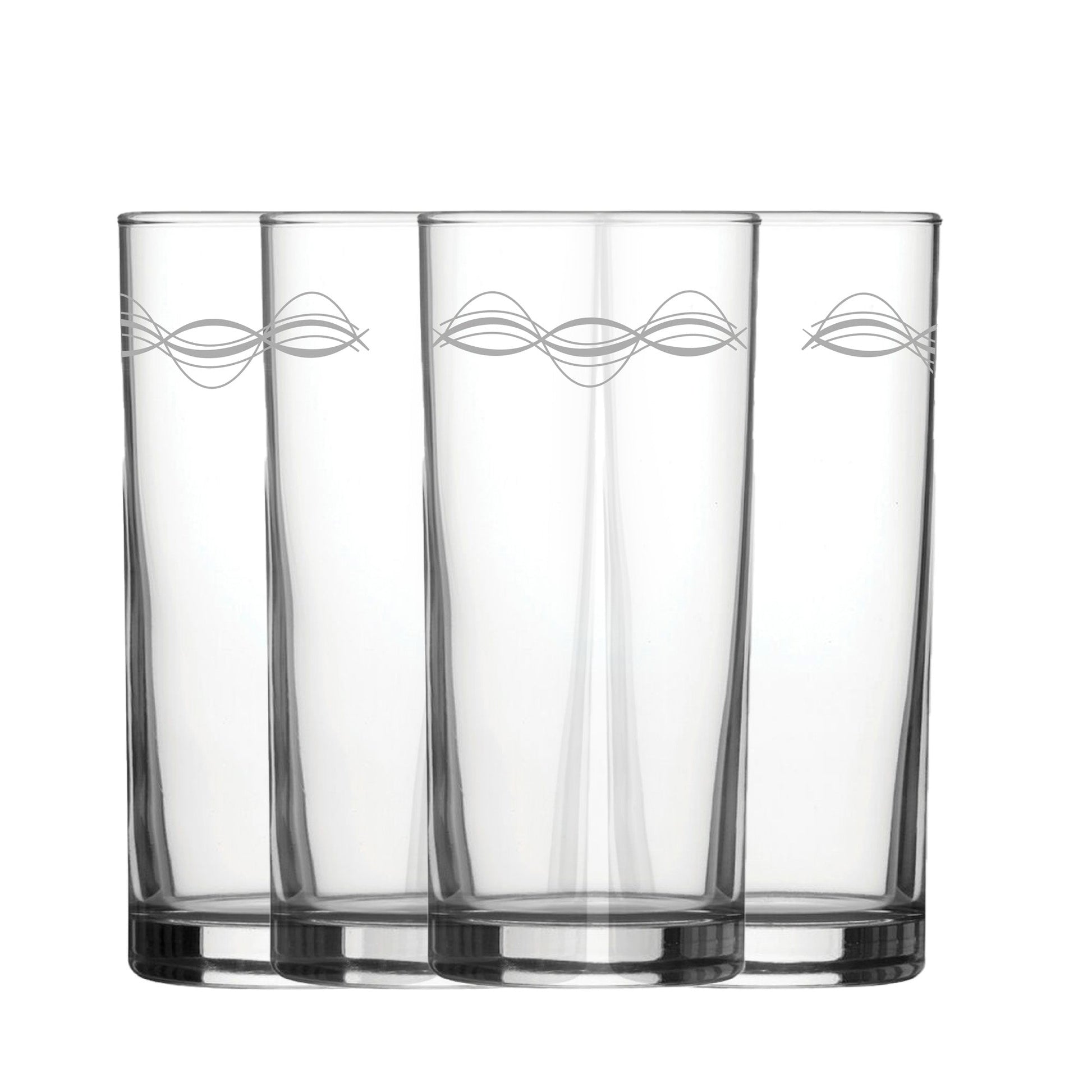 Engraved Waves Set of 4 Patterned Hiball 12oz Glasses