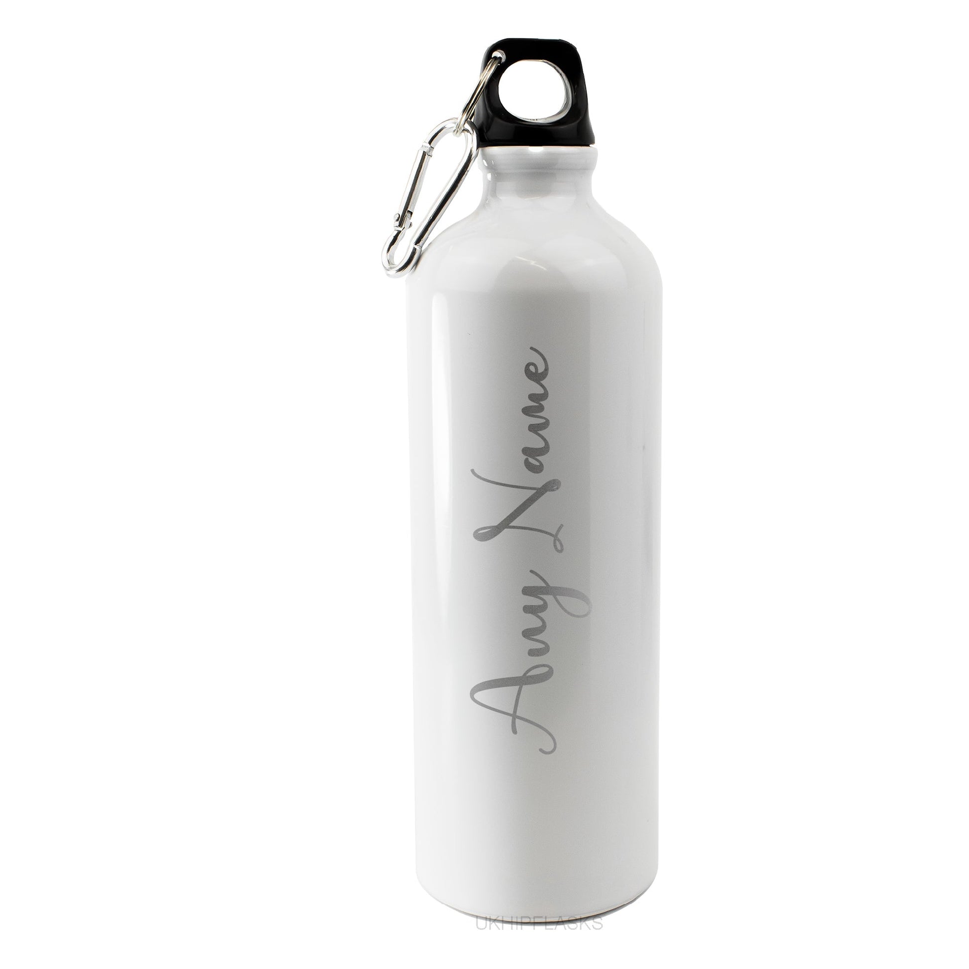 Personalise this 750ml Aluminium White sports bottle with any name. The perfect gift for someone with the need for hydration on the go.