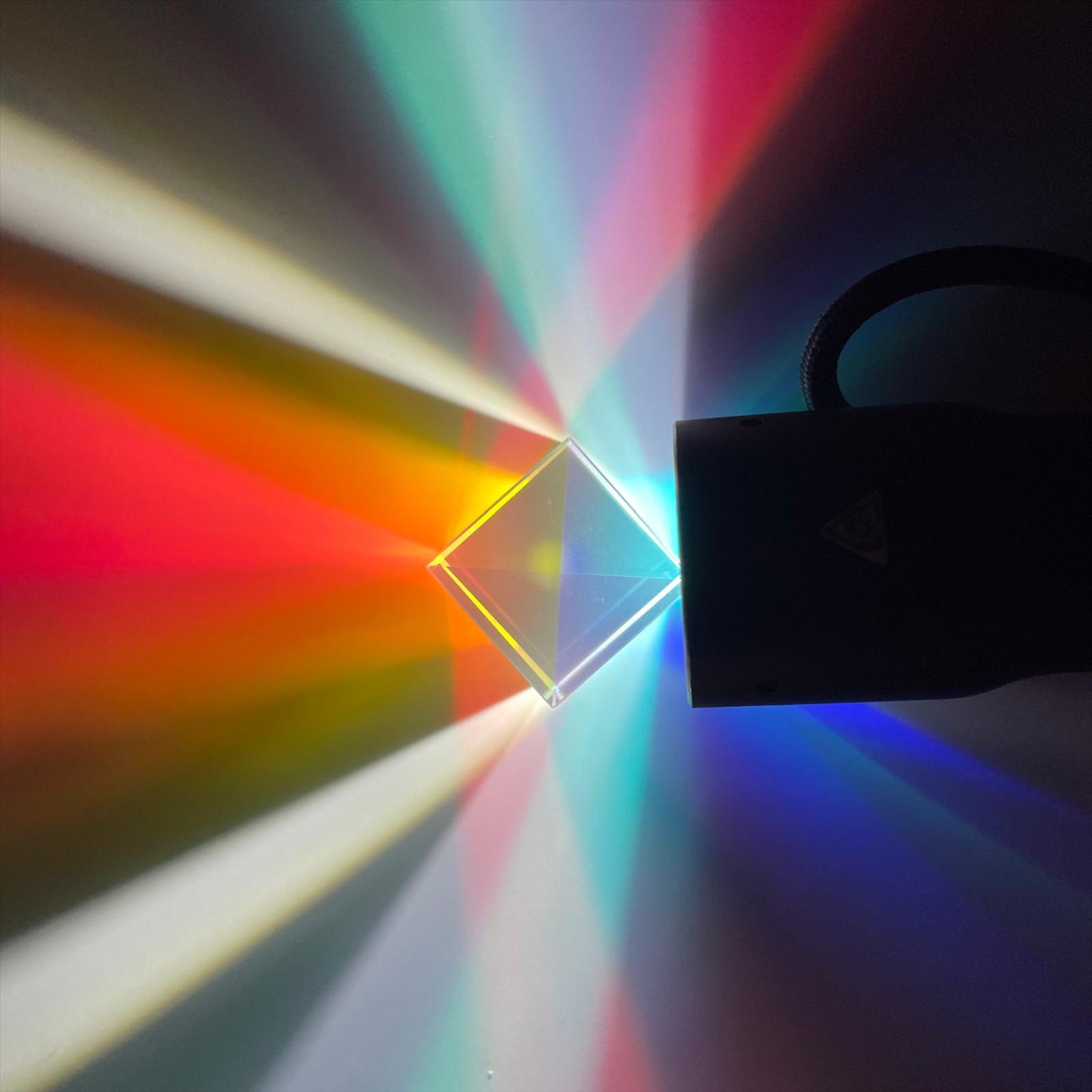 The most enthralling desktop decor for physics fans! The Trichroic Prism is a unique combination of two dichroic prisms that will split an image into 3 colours. When the light passes through the prism, it will create a great deal of dazzling and beautiful light which can be seen in red, green and blue separately. They are typically constructed of multiple glass prisms with special dichroic optical coatings that reflect or transmit light, depending on the light's wavelength. It’s the best desk decoration that every physics fan needs! Your desk need never be dreary again!