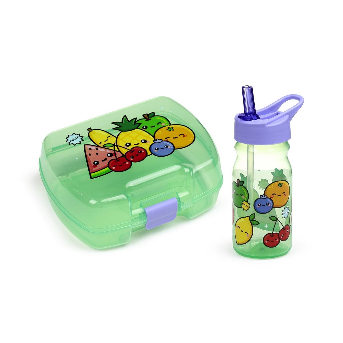 Foodiemals Lunch Box and Water Bottle Set. With clip lock and flip straw.