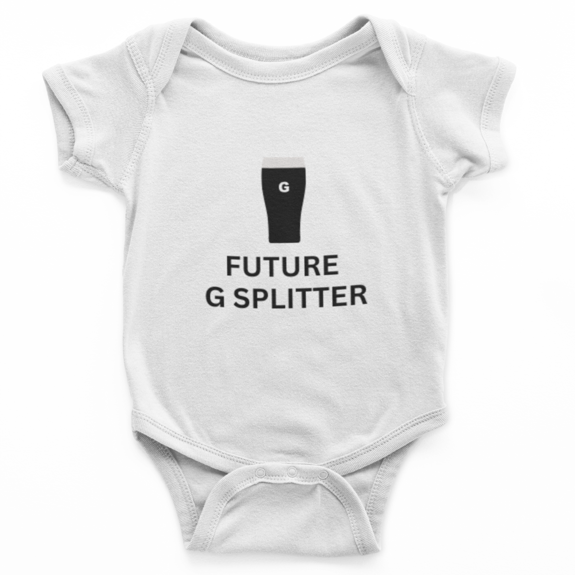 Funny "Future G Splitter" Design: This adorable babygrow features a playful nod to Guinness fans with its clever "Future G Splitter" print, perfect for beer-loving parents.