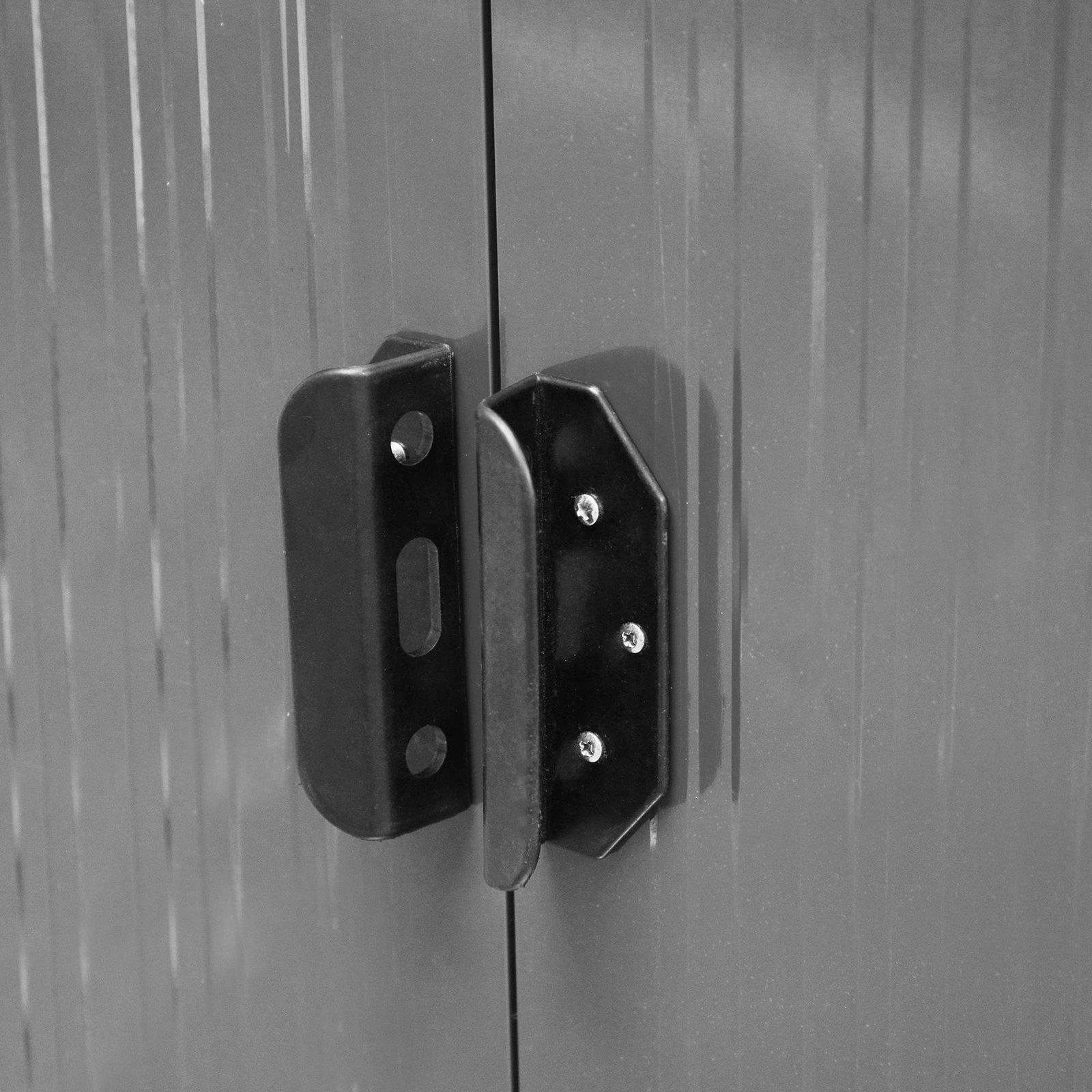This Outsunny outdoor storage shed is a safe and protective way for keeping tools, equipment and outerwear stored. This corner garden shed is also spacious enough as a bike storage shed for the outdoor adventurers. Made of galvanised steel, the outdoor shed is strong, fitted with a sloped roof to prevent rainwater building up. Two clear front panels allow sunlight to drench through, you can see inside easily during the day. Complete with two lockable sliding doors to enter and leave with ease.