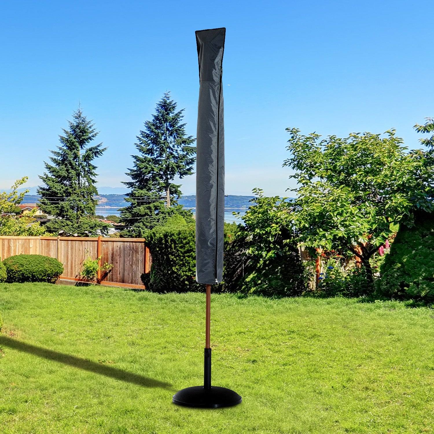 This Outsunny offset umbrella cover is an ideal solution to protect your umbrella when not in use. Made from high density oxford fabric with a PU coating to protect from weather elements. It comes with a side zipped design, making it easy to put on and take off. There is also a bottom buckle to close tightly, this will protect and increase the life span of your umbrella.