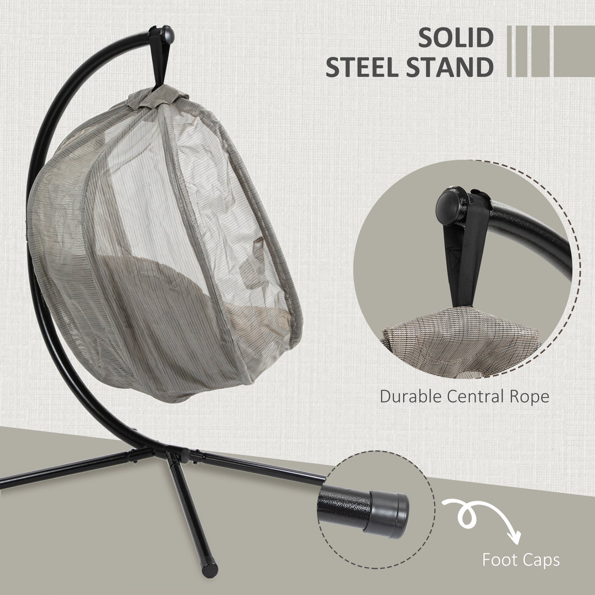 A coveted spot to relax by yourself, in comfort, all day long? Yes please. This Outsunny egg chair with stand is must to have in the garden, on the patio - or even in the bedroom or lounge if you like. Our egg hanging chair comes in two parts: the fabric seat and the metal frame. The seat is removable so it can be stored away. The powder-coated steel is fully supportive, with three legs to ensure balance. And this swinging egg chair also comes complete with a thick padded cushion for comfort.