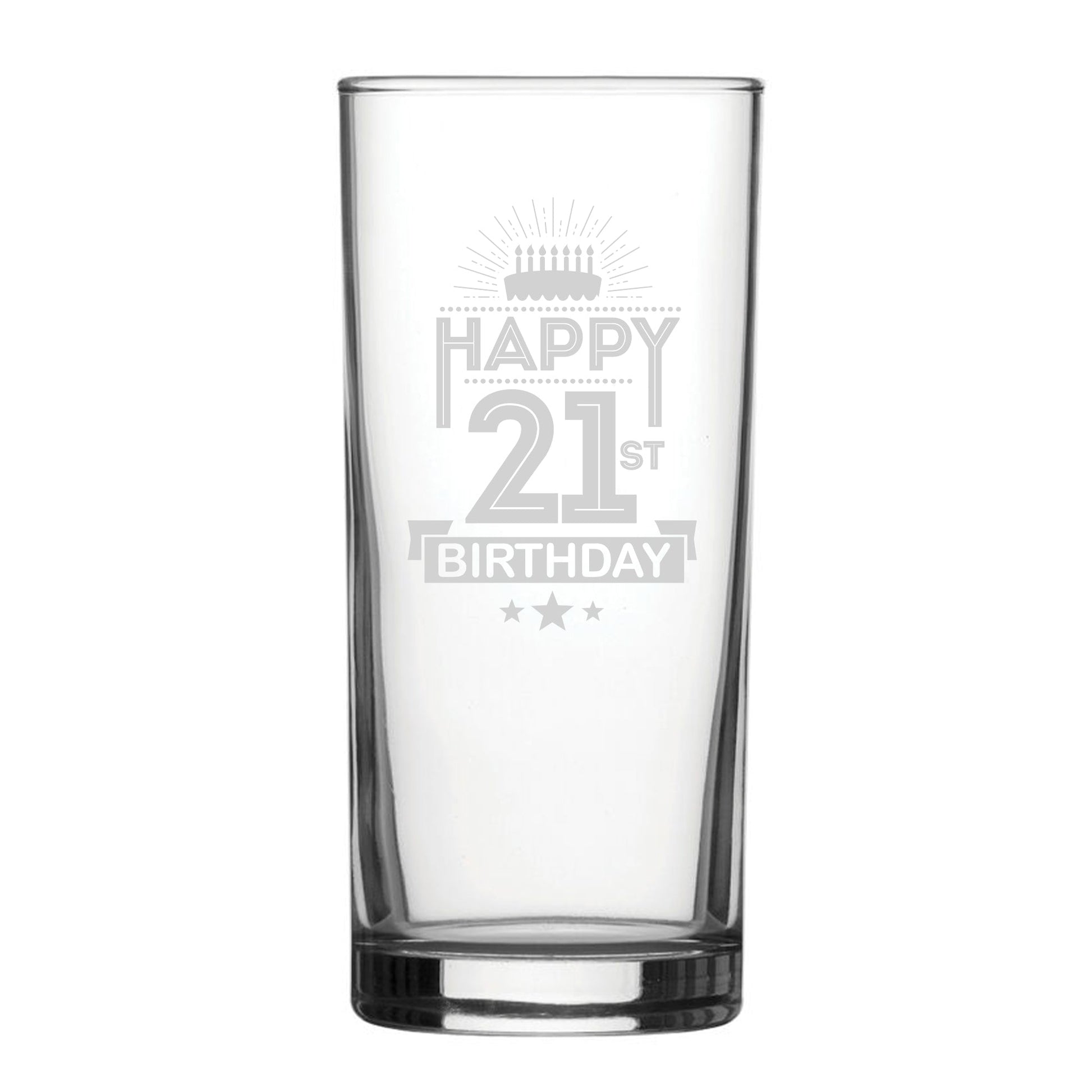 Happy 21st Birthday Cake Design - Engraved Novelty Hiball Glass