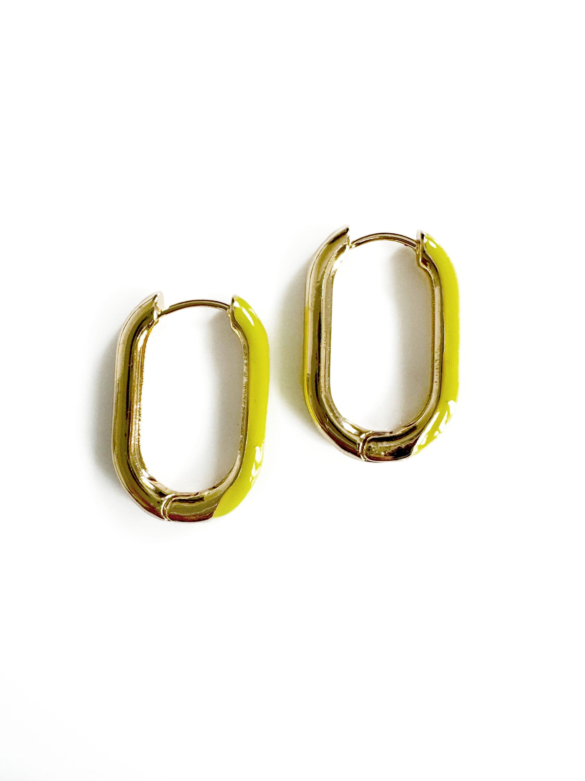 Introducing the Harper Fluro Hello Oval Hoop Earrings - your new season update for a playful and stylish touch. These hoops add a pop of color and a unique shape to your everyday look (and make a great gift too!). Upgrade your ear game with Harper today!