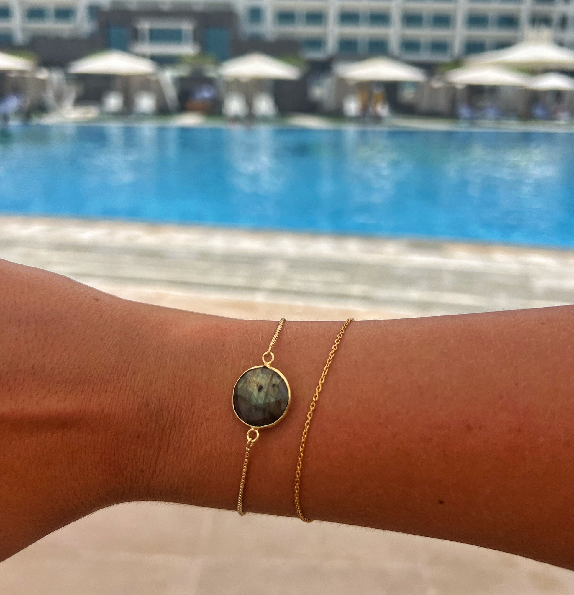 Our Hera crystal bracelet is a gorgeous addition to your jewellery collection. Labradorite is a gorgeous stone, it strengthens faith in the self and trust in the universe. It stimulates the imagination and calms an overactive mind, developing enthusiasm and new ideas.
