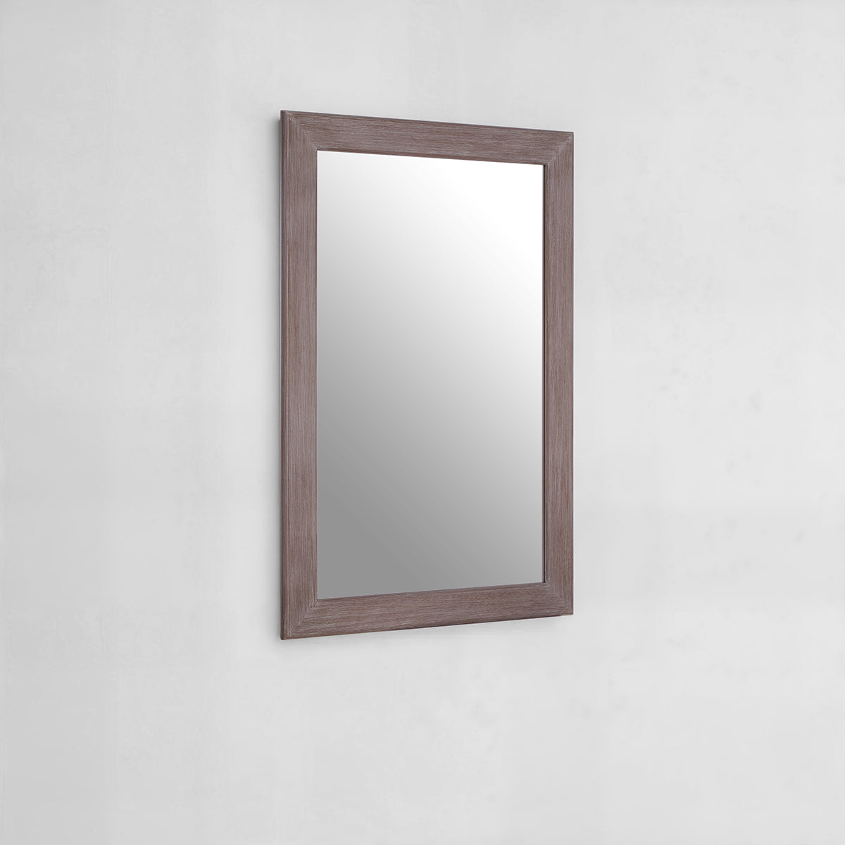 The Heritage wall mirror is an understated accent piece that references calming Nordic design. The brown wooden frame with intricate grains complements the mirror surface.
