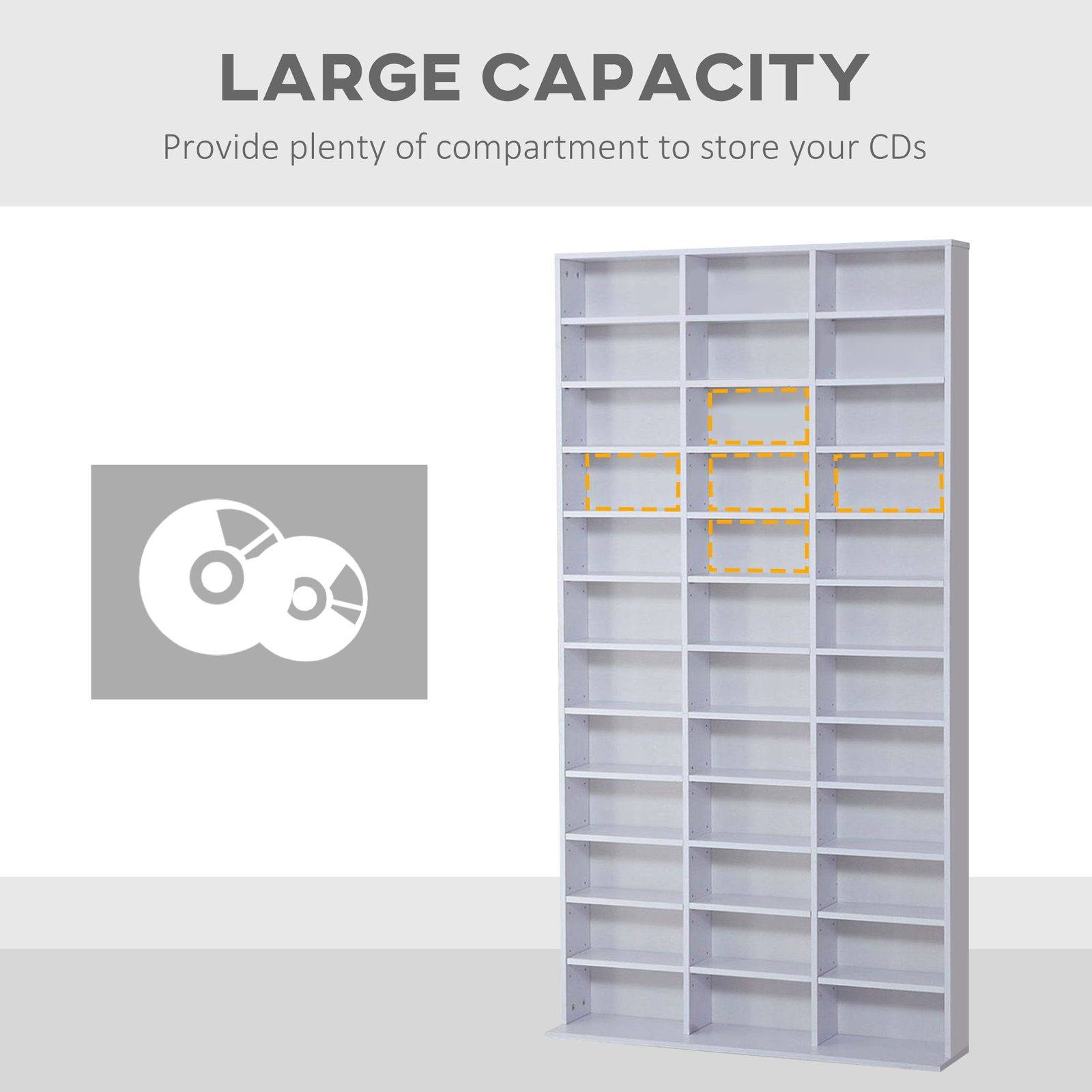 This HOMCOM media storage shelf is perfect for organizing your CDS, DVDS, books etc. Partition boards could be installed at adjustable height to meet different storage needs. This will be a modern and practical furniture in any room. You can be assured that your books, media products will stay safe while they sit in the shelf due to its sturdy base.