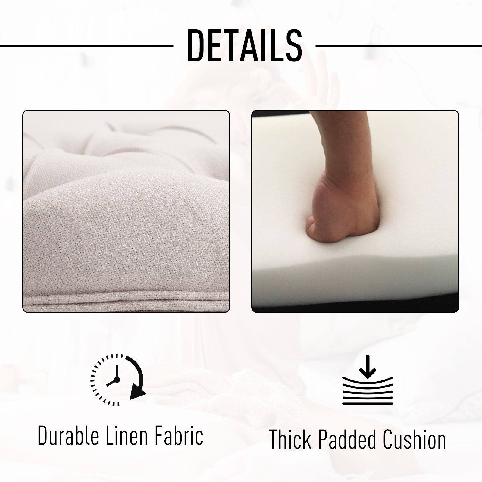 Bring beauty to the bedroom with this bench from HOMCOM. Designed to be placed at the end of the bed, it brings extra seating room when needed. Antique styled, it uses rubberwood for the frame, finished in a brushed-brown effect stain with delicate accents on the legs. A thick foam cushion is placed on the top for comfort, with tufting all over for extra elegance. A touch of luxe sophistication to love, whether it's to sit on, or just admire.