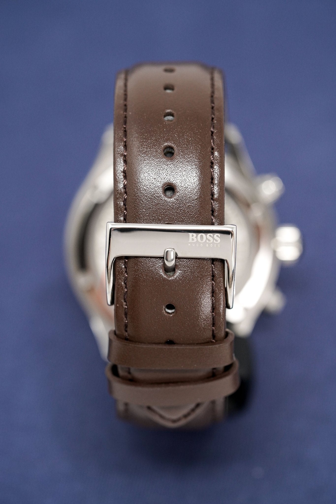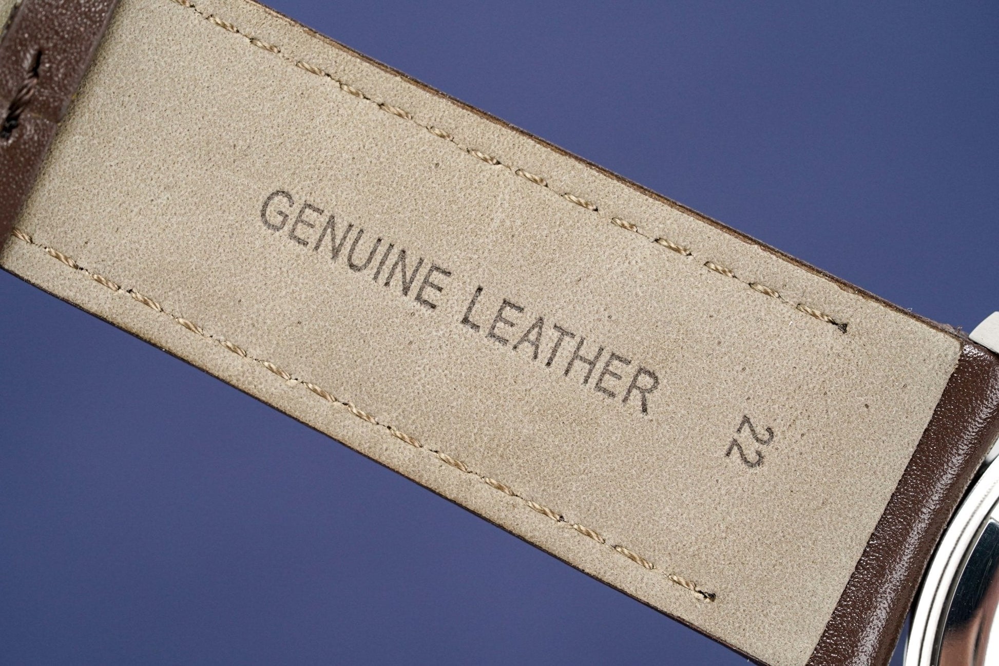 Brown Perforated Leather Strap with Stainless Steel Pin Buckle.