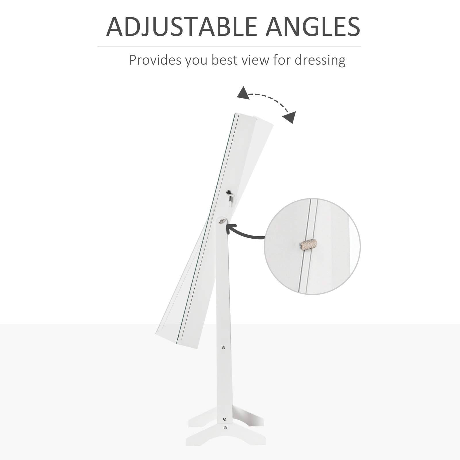 Keep all your jewellery organized and easily accessible with this HOMCOM armoire. On the outside, a full-length mirror is fitted with LED lights, so you can get ready day and night. Inside there are features 100 earring slots, 24 necklace hooks, 105 ring slots, three boxes and five shelves: plenty to keep your make-up, perfumes, jewellery and more safely stored. MDF frame means this piece is durable and sturdy - suitable for everyday use. Get ready all in a spot.