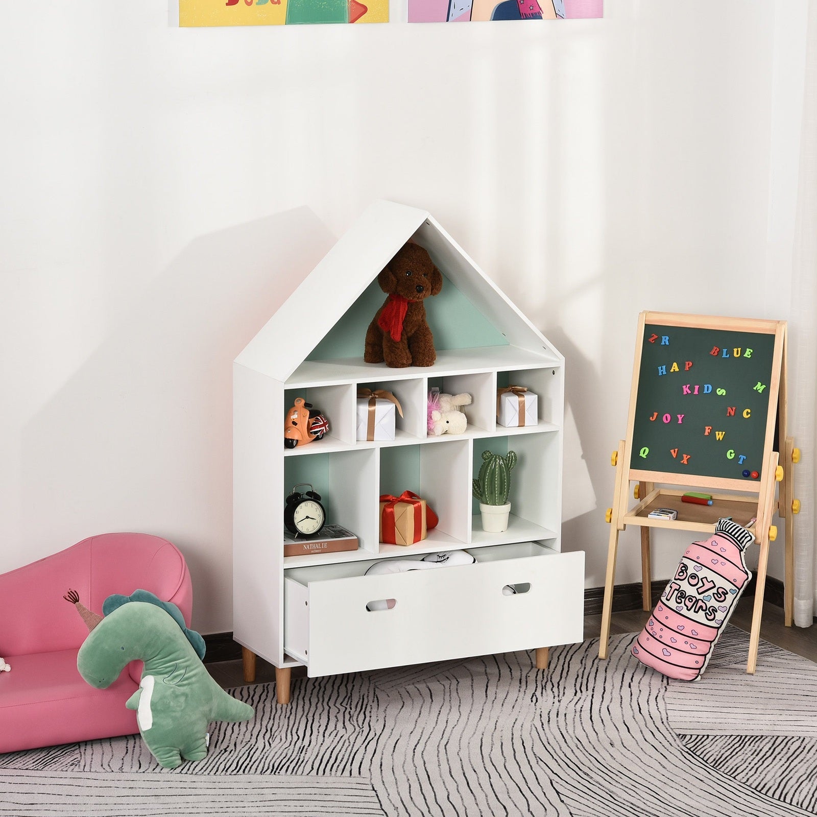 - This multiple shelf applies MDF wood that is environmentally friendly and does not harm your kids' health