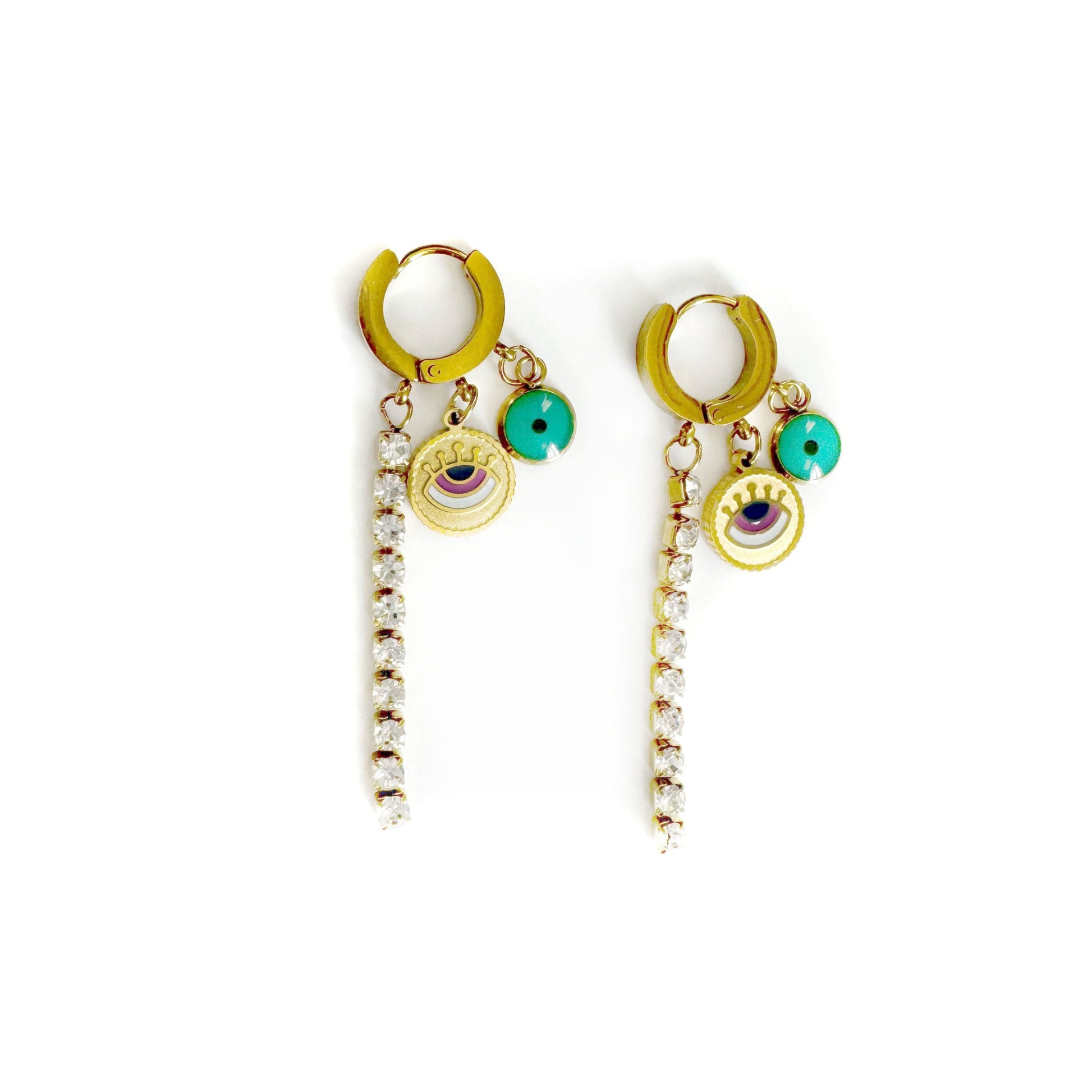 Leelee Luxe 18k Gold Plated Jewelled Evil Eye Charm Dangle Hoop Earrings