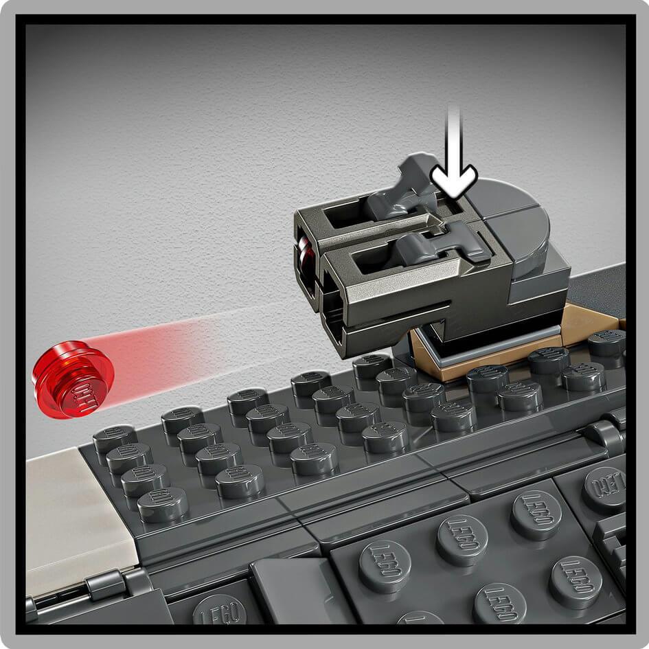 This collectible LEGO Star Wars building toy for 10-plus-year-old boys and girls features rotating engines for landing/takeoff or flight, 2 stud shooters, 2 rotating turrets, each with 2 stud shooters, and a grabbing claw.