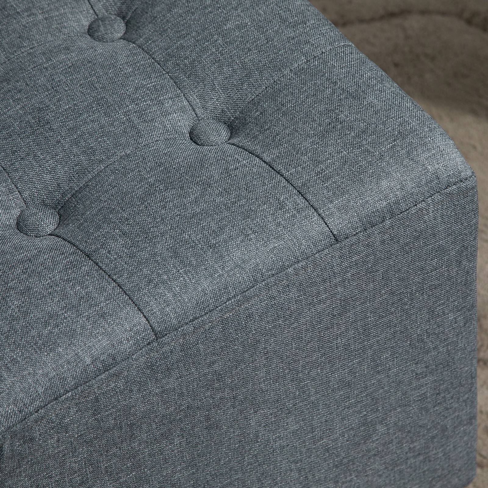 Rest your feet and legs the easy way with this footstool from HOMCOM. The button-tufted design refreshes the square shape to stand out better. Filled with thick sponge, it is comfortable to use, with the linen-look upholstery smooth and gentle on the skin. Using wood for the frame, this is piece which is made to be used every day. Finished with foot pads to protect your floor.