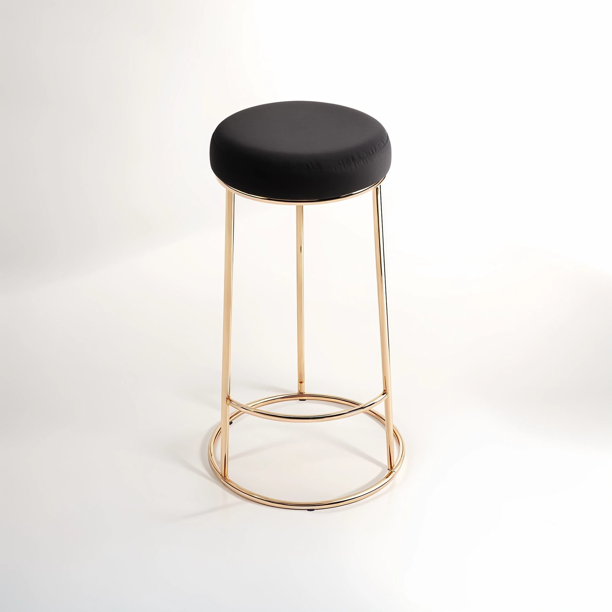 This stylish Manhattan bar stool adds a touch of elegance to counter-height seating. Upholstered in soft velvet, its padded seat ensures comfort while exuding sophistication. The gold finish metal frame, paired with a crossbar footrest, enhances its glam appeal and offers sturdy support. Perfect for modern and luxury-inspired interiors, this stool is both stylish and functional.
