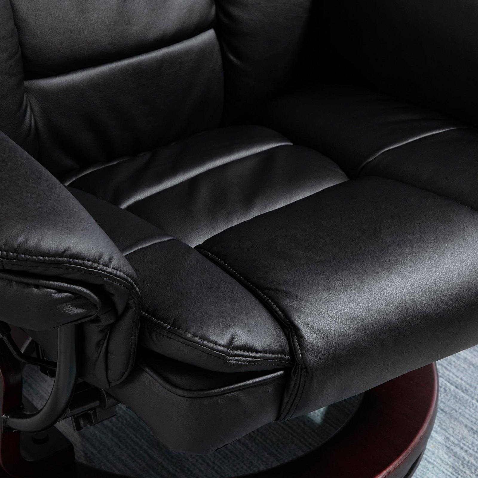 Manual Recliner and Footrest Set PU Leather Leisure Lounge Chair Armchair with Swivel Wood Base
