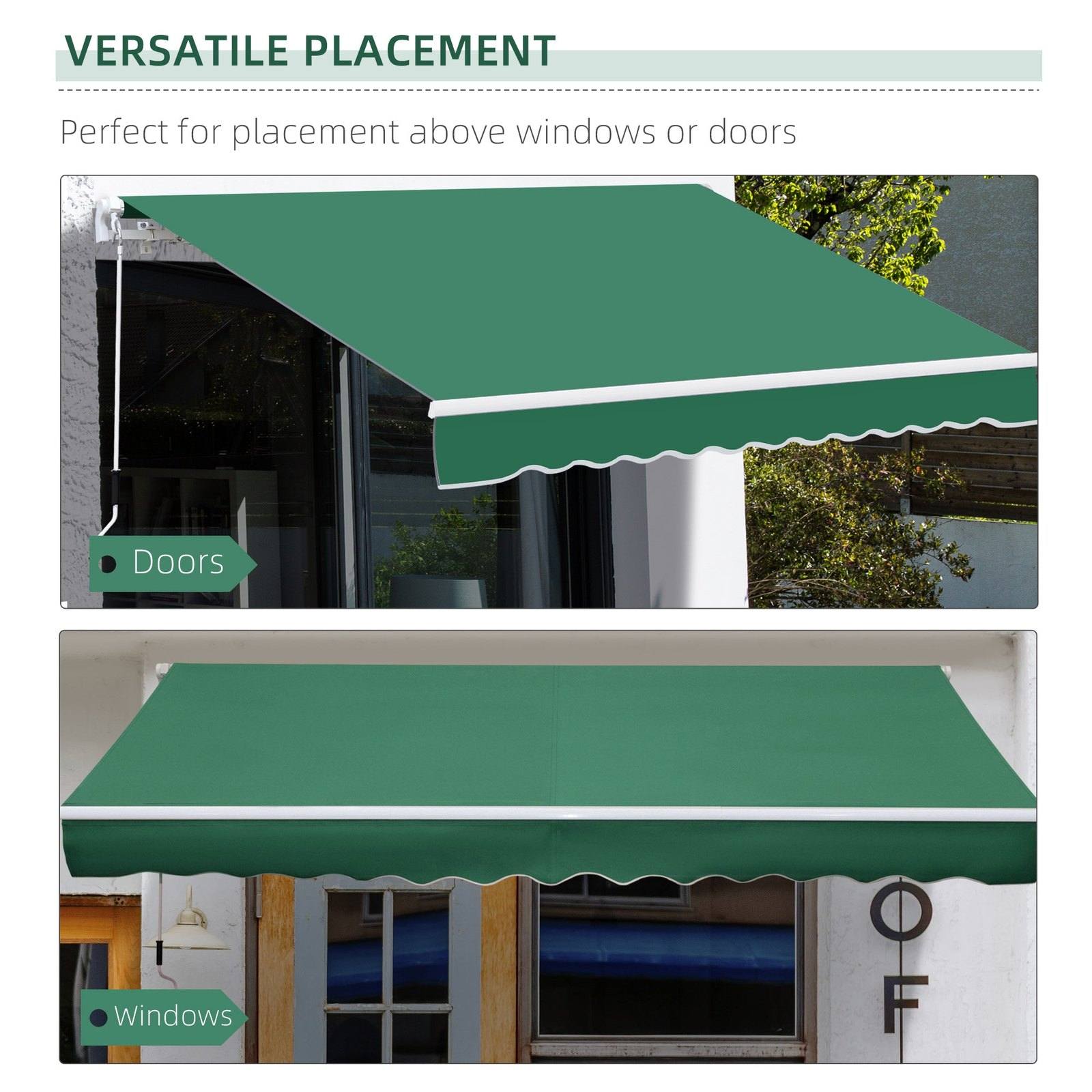 With a thick sun-shielding canopy fixed on an aluminium frame, this 3.95 x 3m awning from Outsunny will give you all the shade you need this season. The manual design means you can set it up wherever needed - whether it's above a door or window, and it easily mounts onto your chosen surface with all accessories included in the package. Finished with a crank handle for easy operation. It's time to enjoy the beauty of outdoors more than ever before.