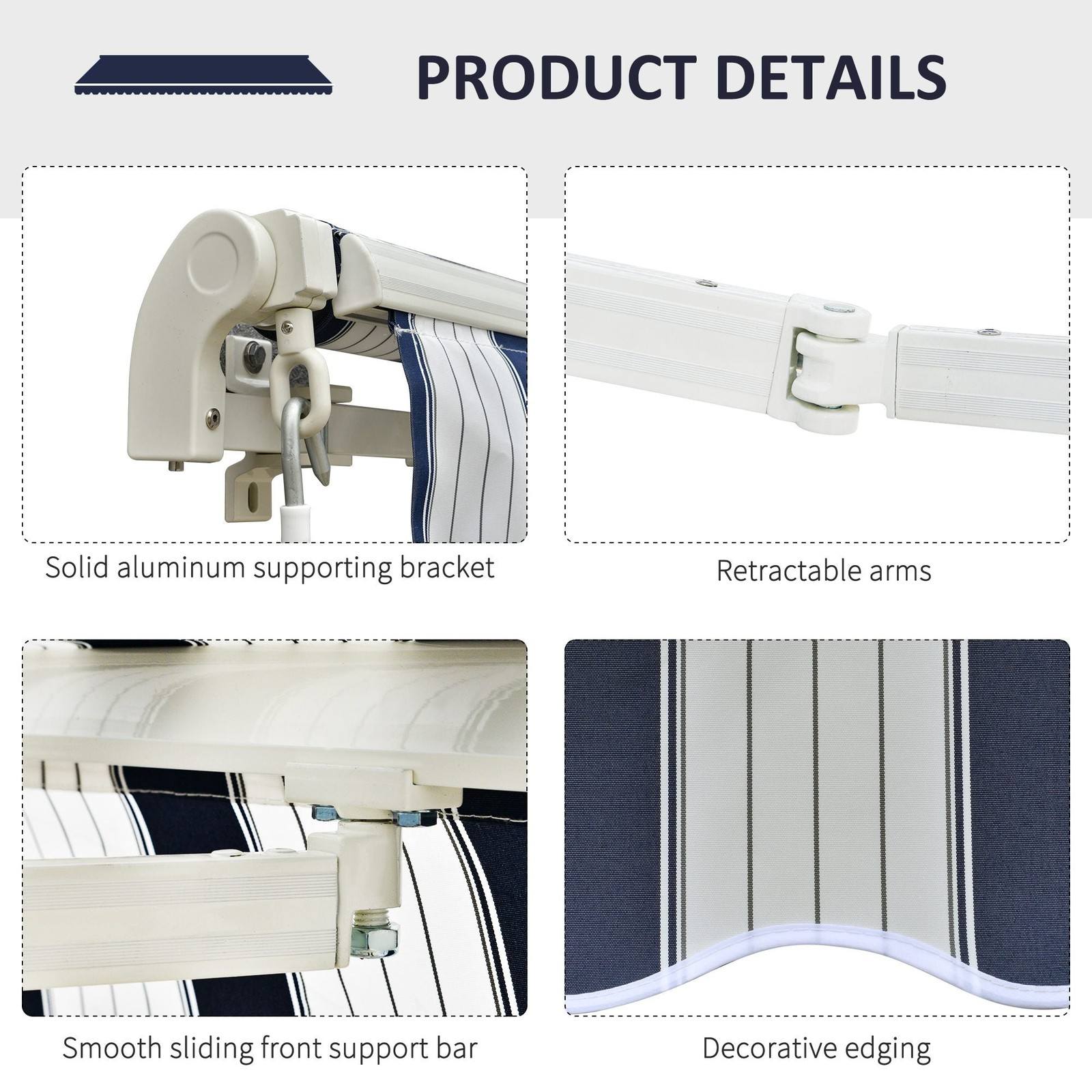 - With chain drive and hand crank which make easy to project/retract the awning.