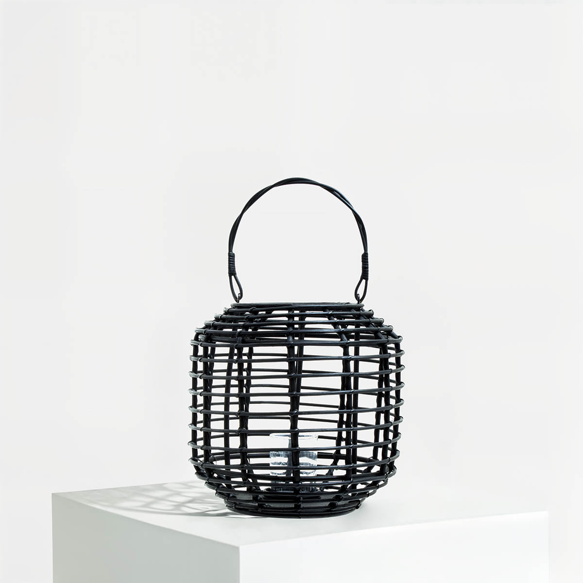 This natural lantern showcases skilled craftsmanship with its handwoven black rattan design. Its elegant finish and cylindrical shape create an inviting, rustic aesthetic, perfect for enhancing boho, coastal, or farmhouse decor. Ideal for holding candles, this lantern has a glass rod, adding a soft, warm glow to living spaces, patios, or gardens with its stylish accent.