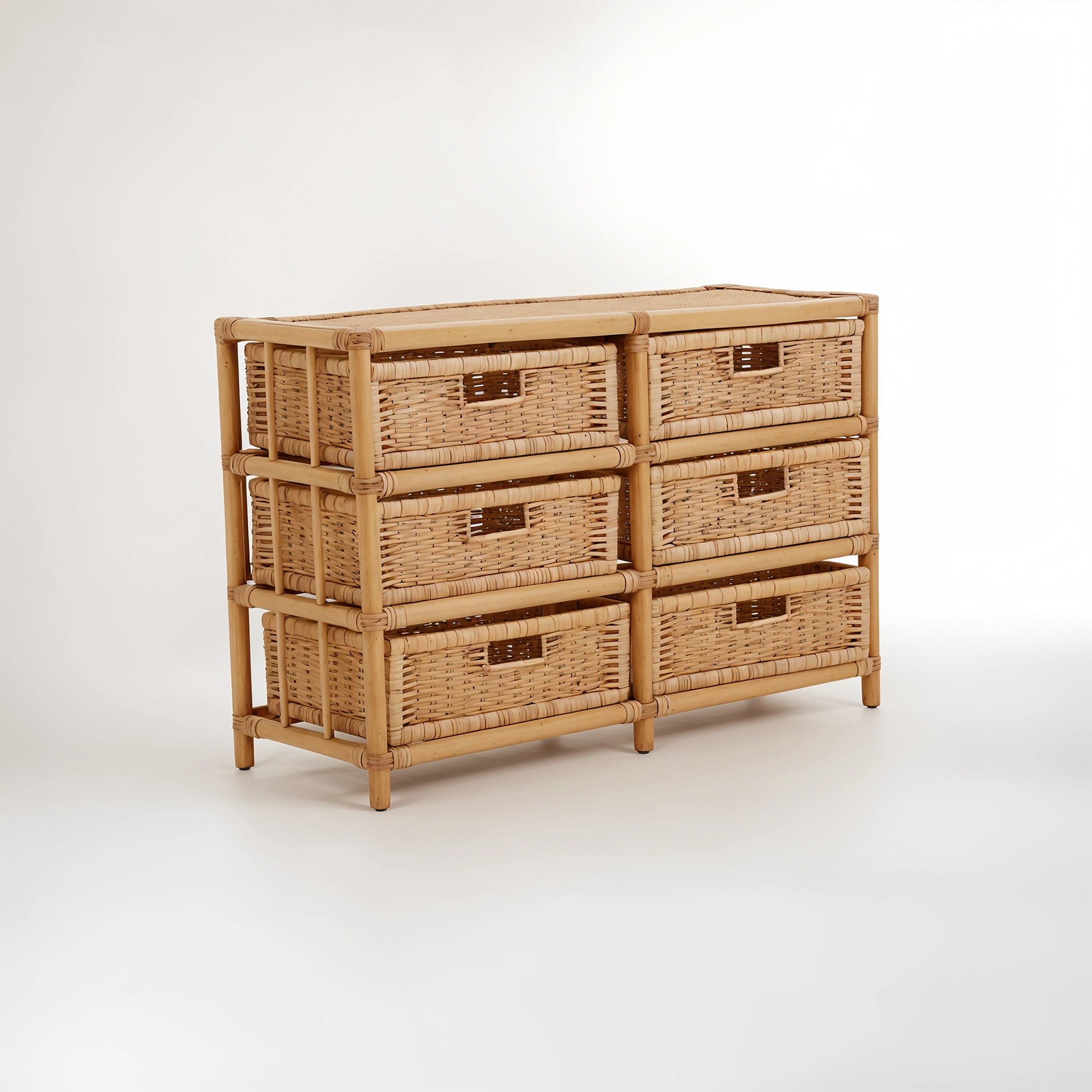 The Mataram six-drawer storage chest is a stylish and functional addition to any home. Its six storage drawers offer ample space to organise belongings, while the natural rattan accents bring a warm, organic touch to the design. Perfect for living rooms, bedrooms, or hallways, this chest blends seamlessly into various interior styles, enhancing both decor and functionality.