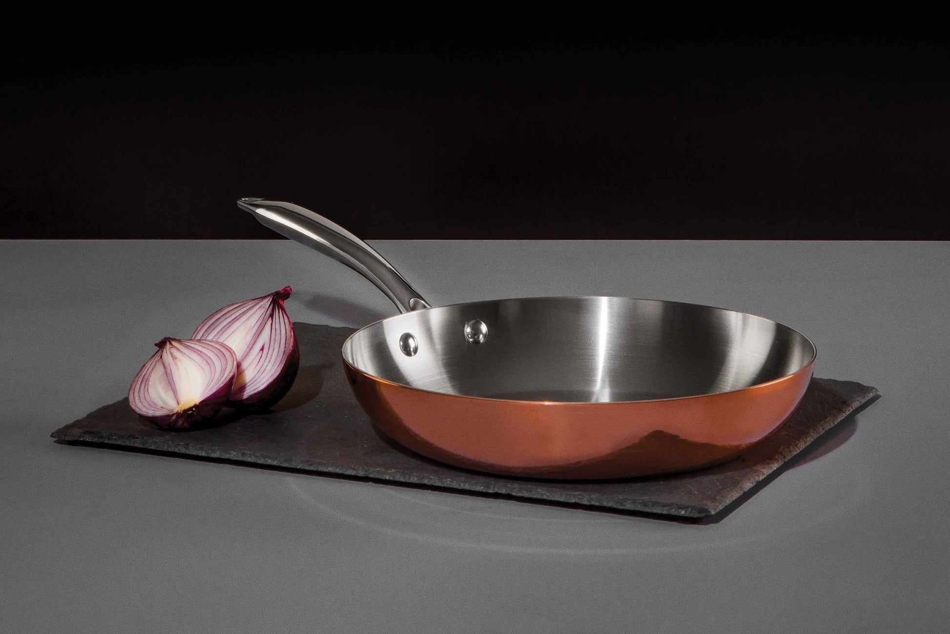 This 26 frying pan's tri-ply construction means that it will conduct and distribute heat quickly and evenly, making it ideal for creating delicious fried meals. The easy to grip handle is made from strong stainless steel, with an opening at the end that allows it to be hung securely on a rail when not in use.