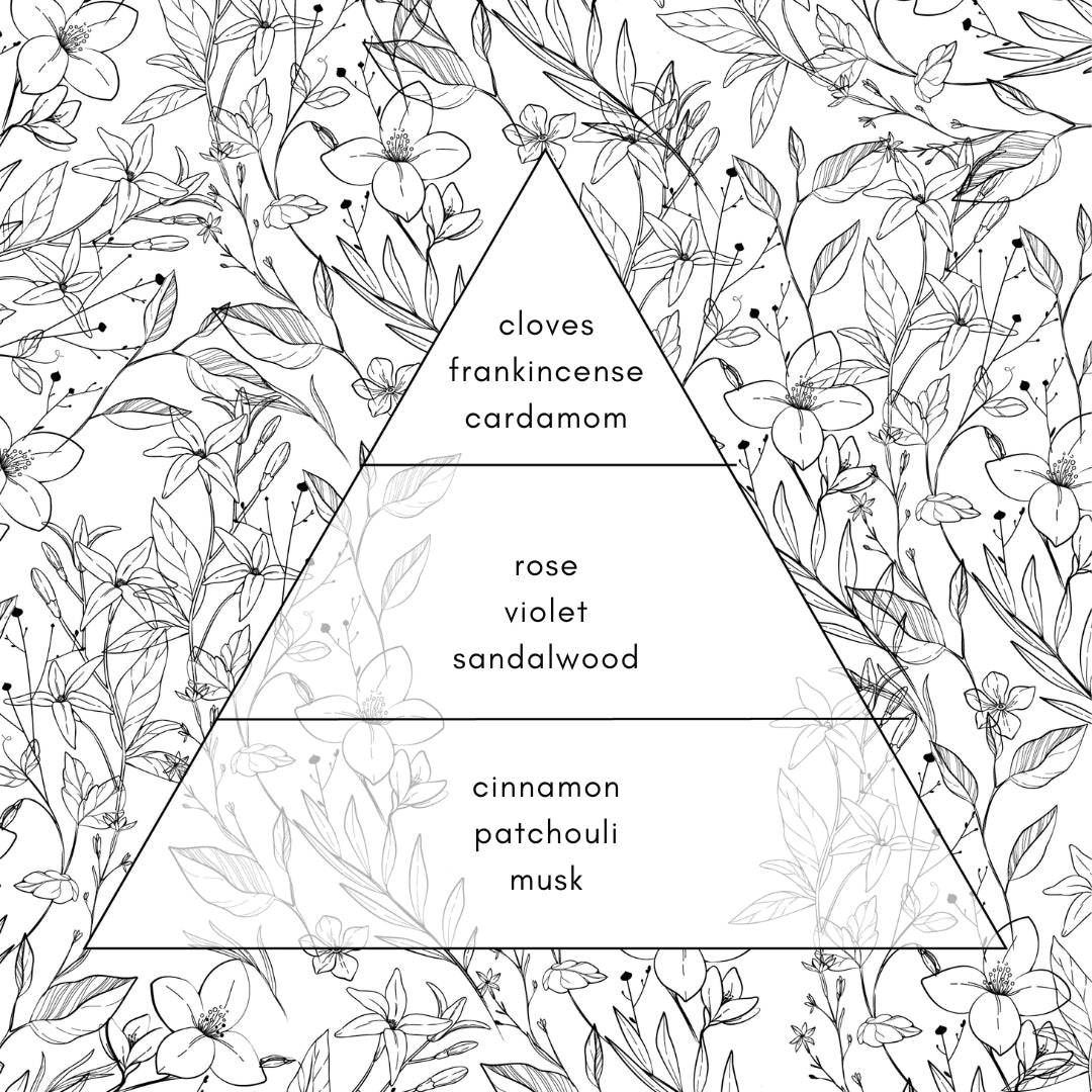 The base of Mirratum is a sensual base that lingers on the skin for hours. Cinnamon lends a spicy sweetness to the fragrance, which works perfectly with the rich and earthy patchouli. Subtle touches of musk introduce a delicate, sensual depth, emphasising the fragrance's longevity and uniqueness.