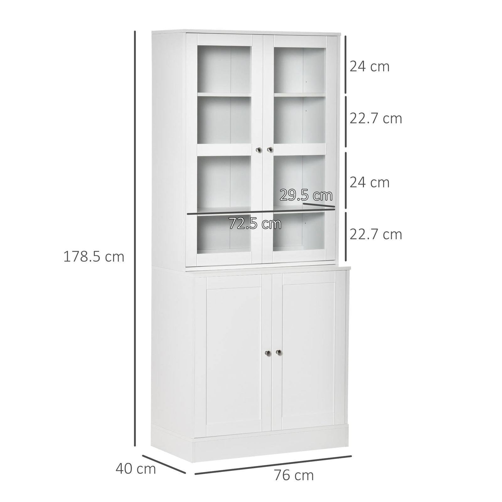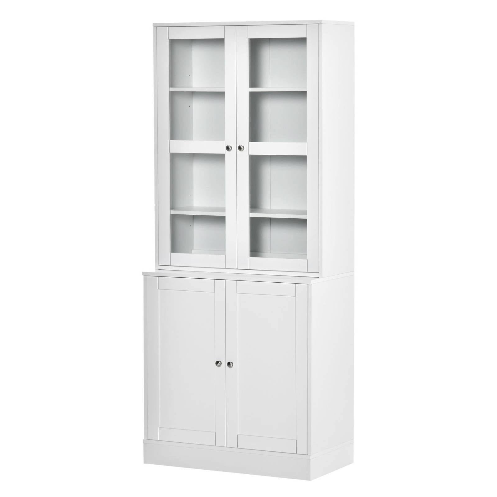 Create a tidy and presentable home with ease - do it with this HOMCOM display cabinet. It's formed of a top cabinet and bottom cupboard for plenty of storage; the upper is fitted with tempered glass doors so you can see through and display your favourite items beautifully. Also inside the top cabinet, there are two adjustable shelves to store items at the position you want. Made from MDF, this unit is durable - perfect for the everyday, and it's finished with safe anti-tipping straps.