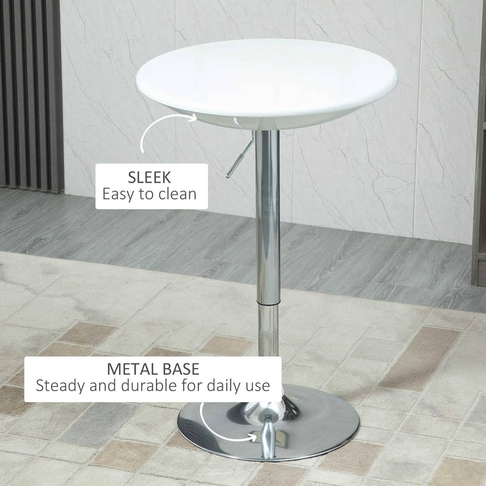 This bar table from HOMCOM is crafted exquisitely to match the elegance of your stylish dining room, kitchen, bar, or patio. The round ABS spray-painting tabletop is water resistant and easy to clean, consistently displaying a sense of modern style and class. With a simple pneumatic gas rod, this table can be adjusted to accommodate either seated or standing guests depending on the situation or setting, while the convenient 360 degree top swivels adds even more function to fashionable form.