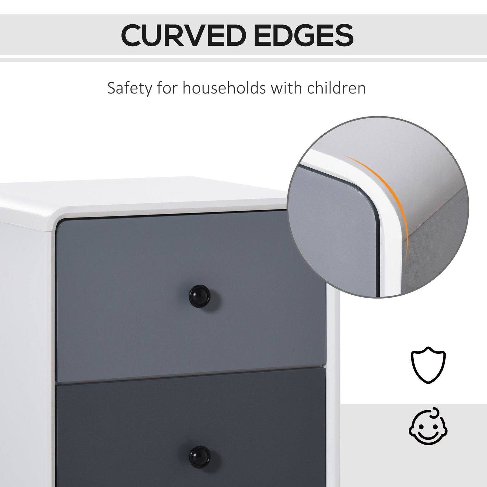 Let this bedside table from HOMCOM do the talking whilst keeping your home effortlessly tidy. This dresser is made from MDF for a sturdy structure and crafted into a smooth curved shape for beauty. There are two drawers for keeping all your bedtime essentials next to you, plus the flat top allows room for a lamp and alarm clock. The bedroom chest of drawers is finished with round knob handles and pine wood legs to keep the balance. Matching items: HOMCOM 831-352 and 831-358.