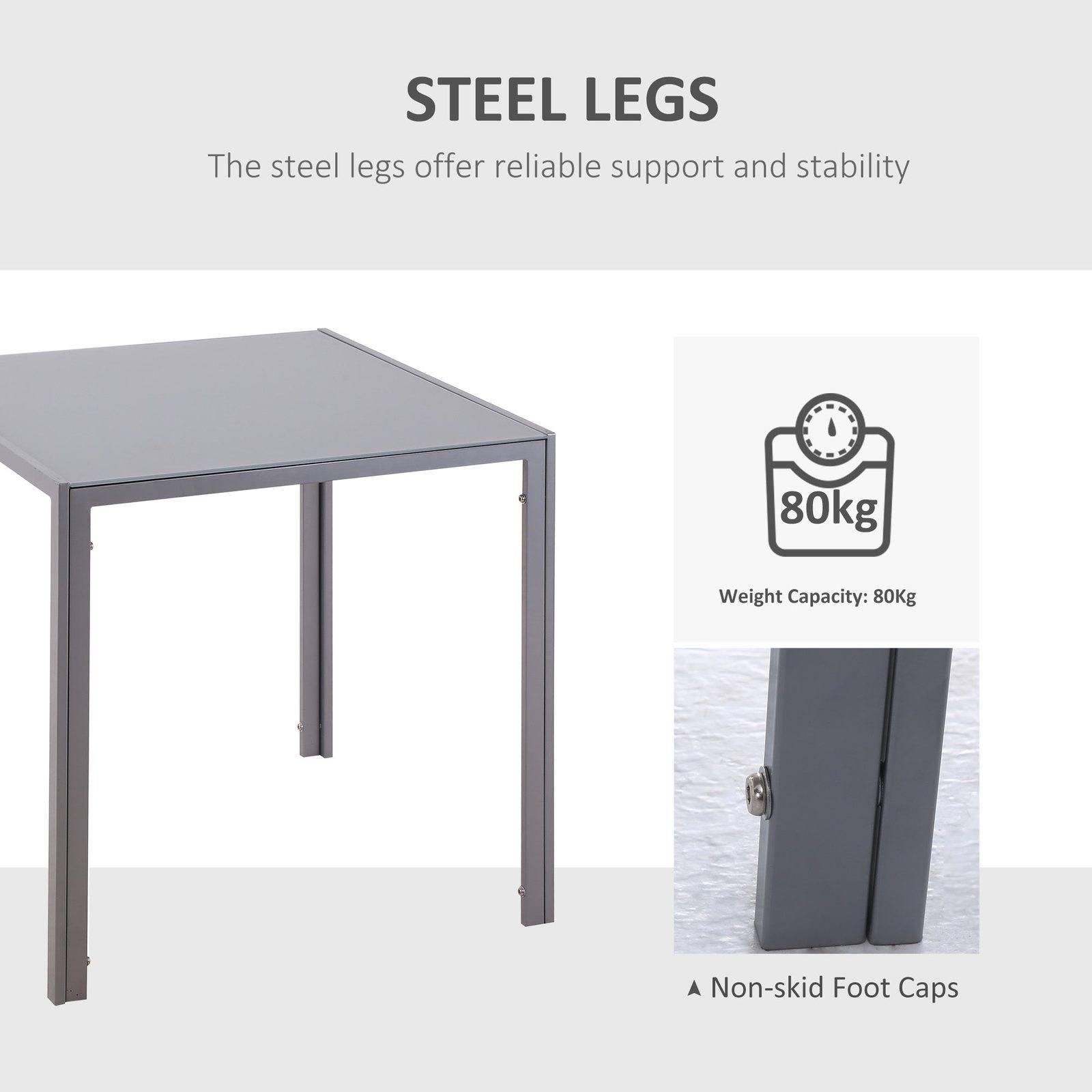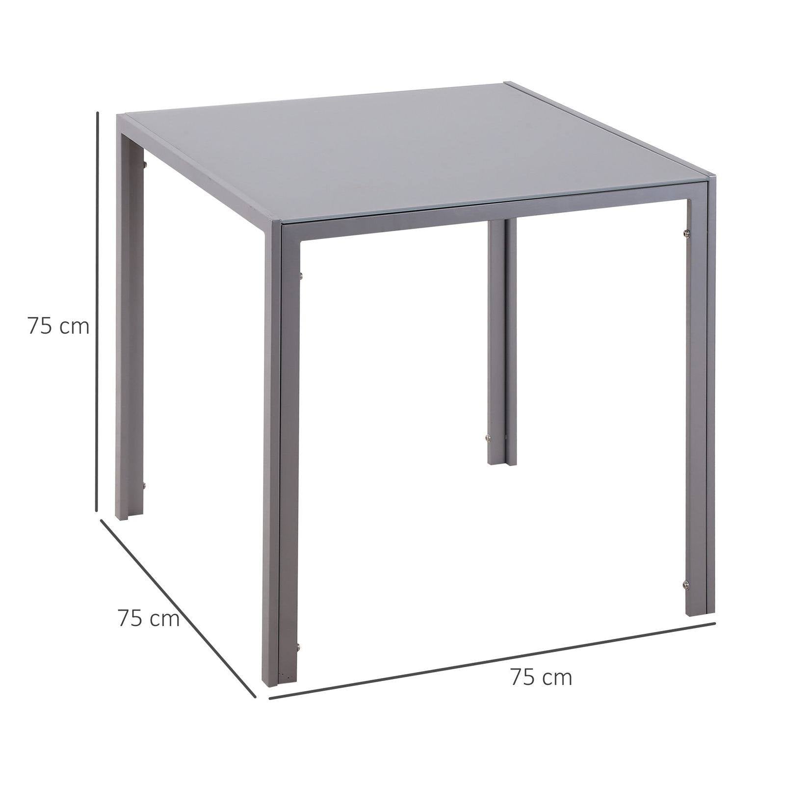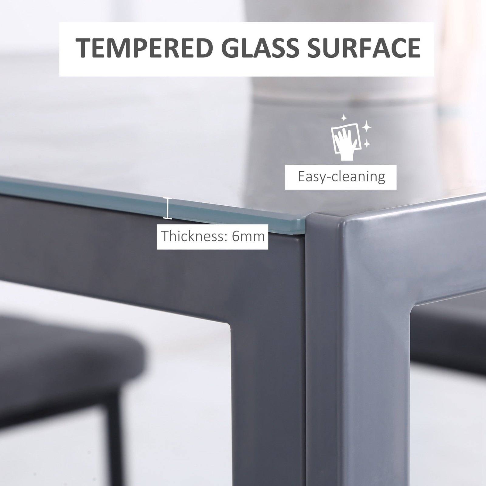 A touch of contemporary for your morning and evening meal times, thanks to this dining table for 2-4 people from HOMCOM. It's fitted with a 6mm tempered glass top for a sleek look, whist ensuring you've got a solid spot to dine and drink from. Compact size to sit by yourself or with a friend. Made from strong powder coated steel, the frame is tough and sturdy, with the square-shaped legs helping to keep it stable.