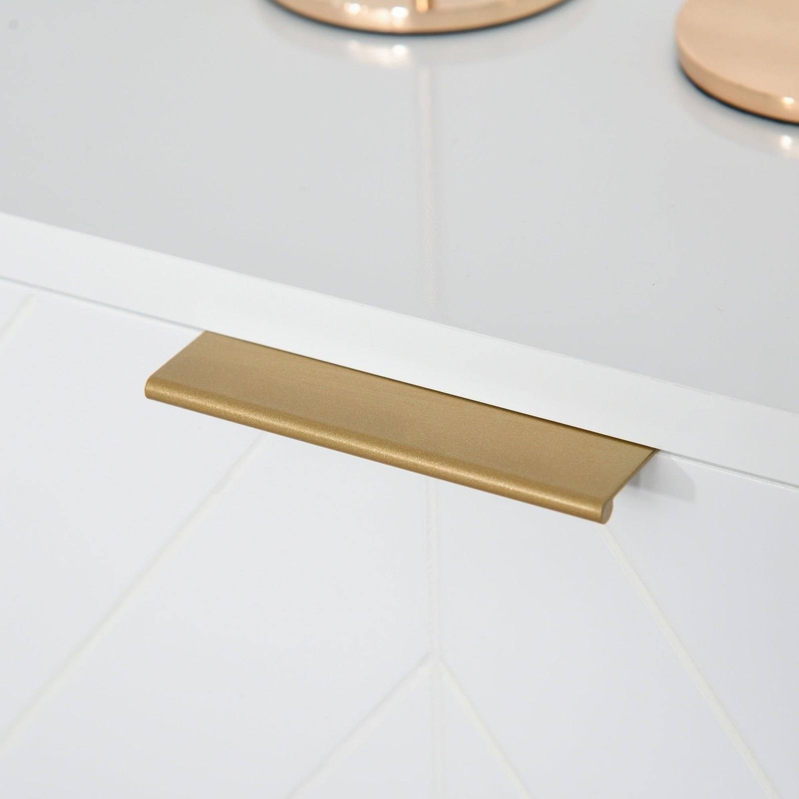 Ready to organize your home space? Pick up the drawer cabinet, and you'll be ready in no time. This clean and sleek indoor cabinet with luxurious gold base and coordinating hardware accents will perfectly match your interior styling. Three drawers and two door cabinets offer an abundance of versatility to effortlessly organize and store away your daily supplies and utensils. Crafted of MDF and steel, it is a durable and attractive addition to your house