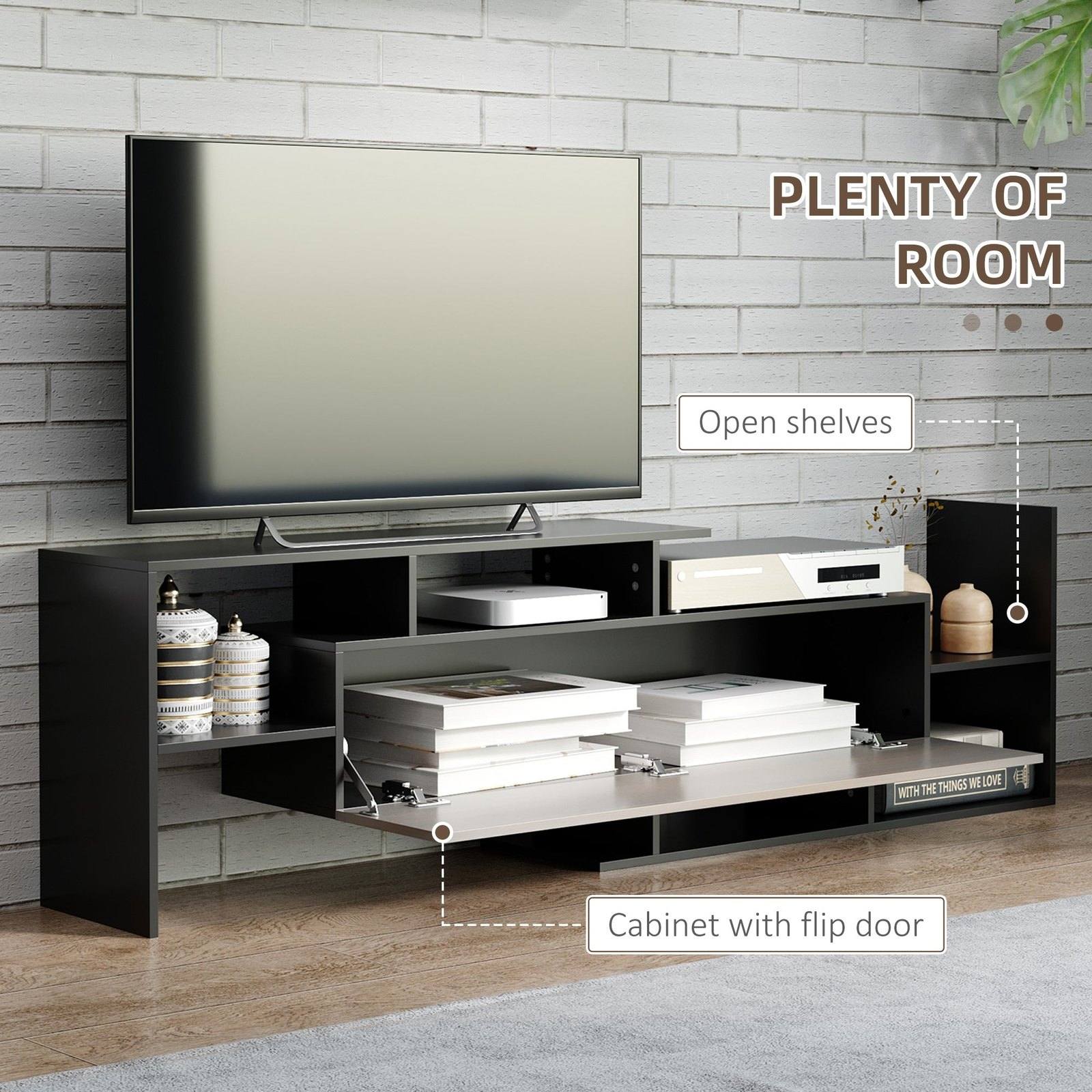 A matching futuristic look is easy - look to this media set from HOMCOM. Comes with a TV storage cabinet and a floating shelf - you can have everything and more stored and displayed together. The TV cabinet features a middle storage compartment with flip-down door and side shelves, with the flat top suitable for your various needs. Use the shelves to show off your favourite photos and ornaments. Both parts are made from particle board for durability and strength.