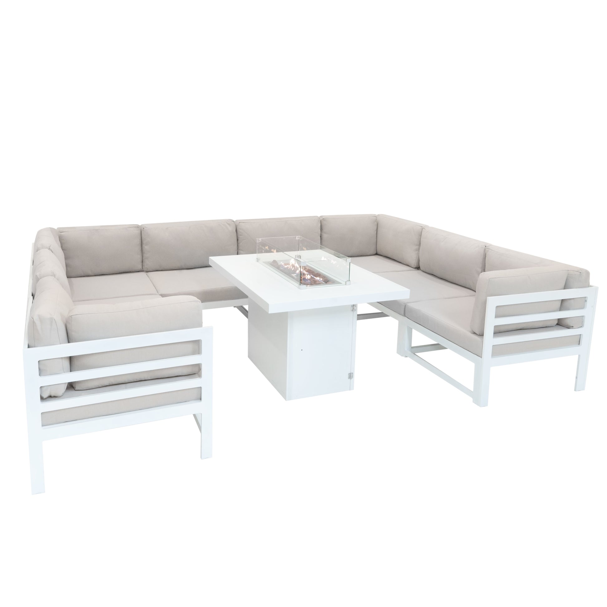 Crafted from premium white aluminium, this modular sofa set not only boasts lasting durability but also exudes timeless style. Its modular design, featuring eight spacious seats, allows for customisable arrangements, making it versatile for various outdoor occasions - be it hosting lively gatherings or creating an intimate personal sanctuary.