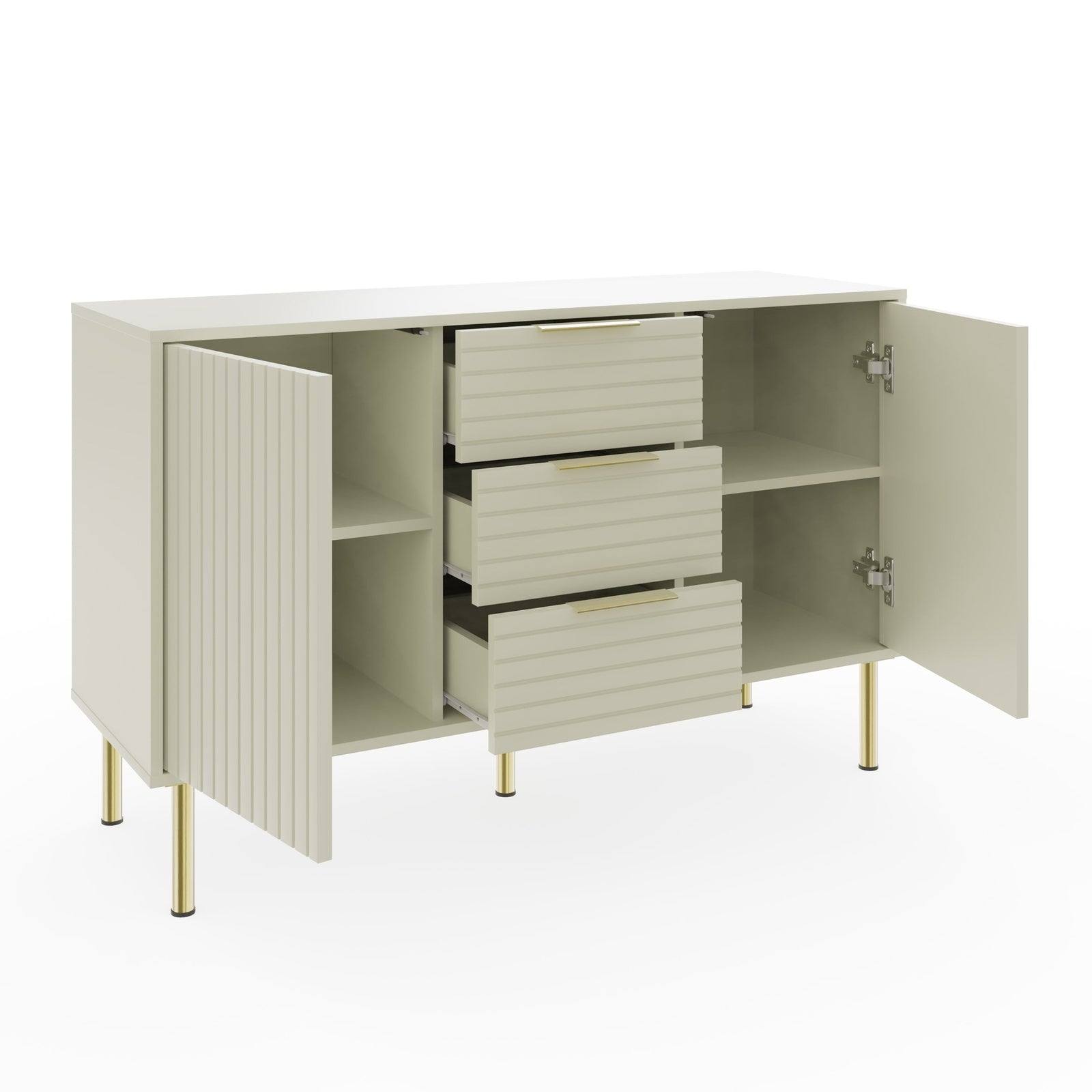 Nervata Large Sideboard White & Gold 2 Doors 4 Shelves 3 Drawers