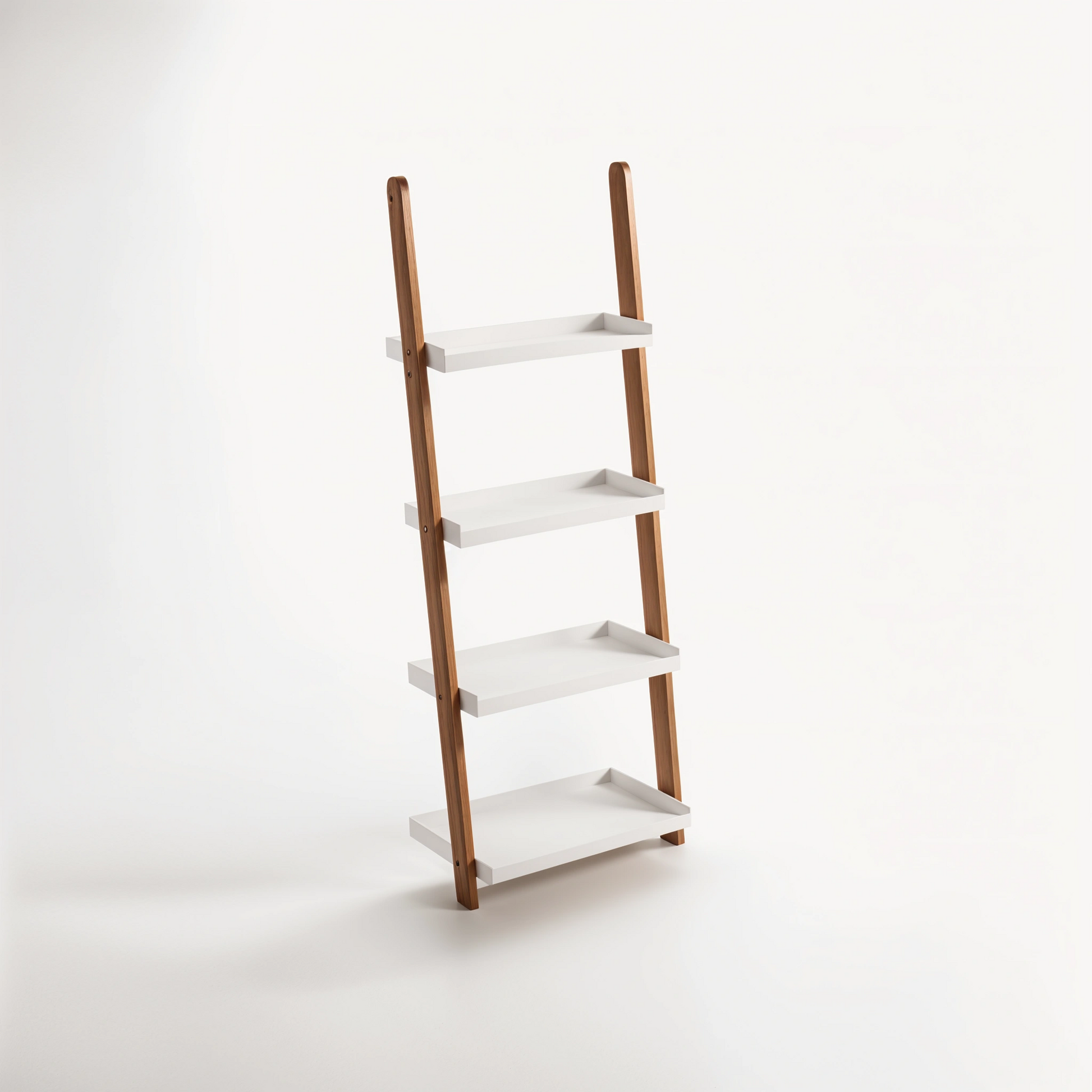This shelf ladder unit features a minimalist look with its sleek frame and four shelves. The ladder unit has a renewable wooden frame in natural finish that boasts vivid grains offering an organic charm to your interior. The four hi-gloss white shelves have a recessed surface and open front that keeps the contents safe and visible simultaneously making it ideal for displaying plants and decor accents.