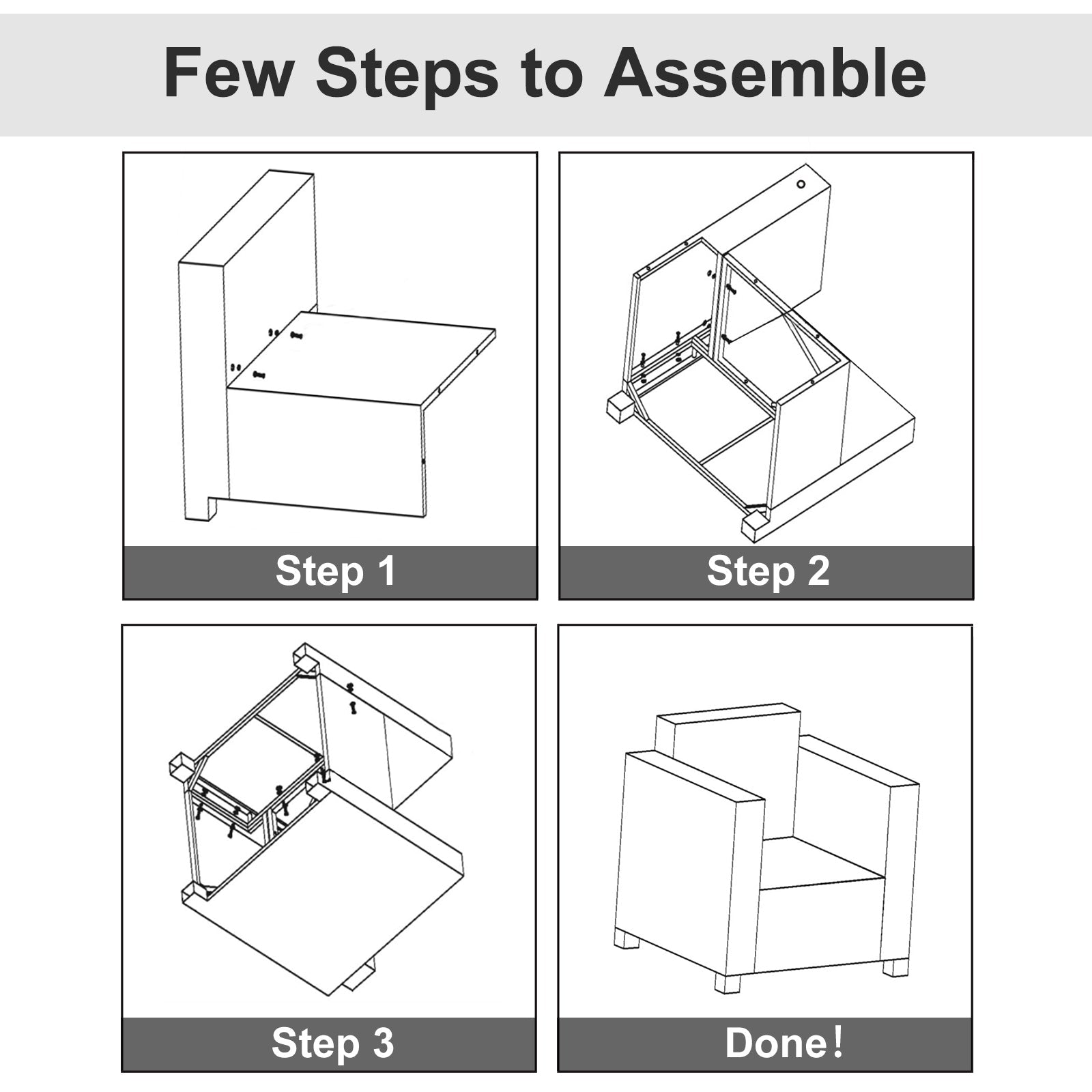 - 1 x single sofa chair 1 x back cushion 1 x seat cushion 1 x manual