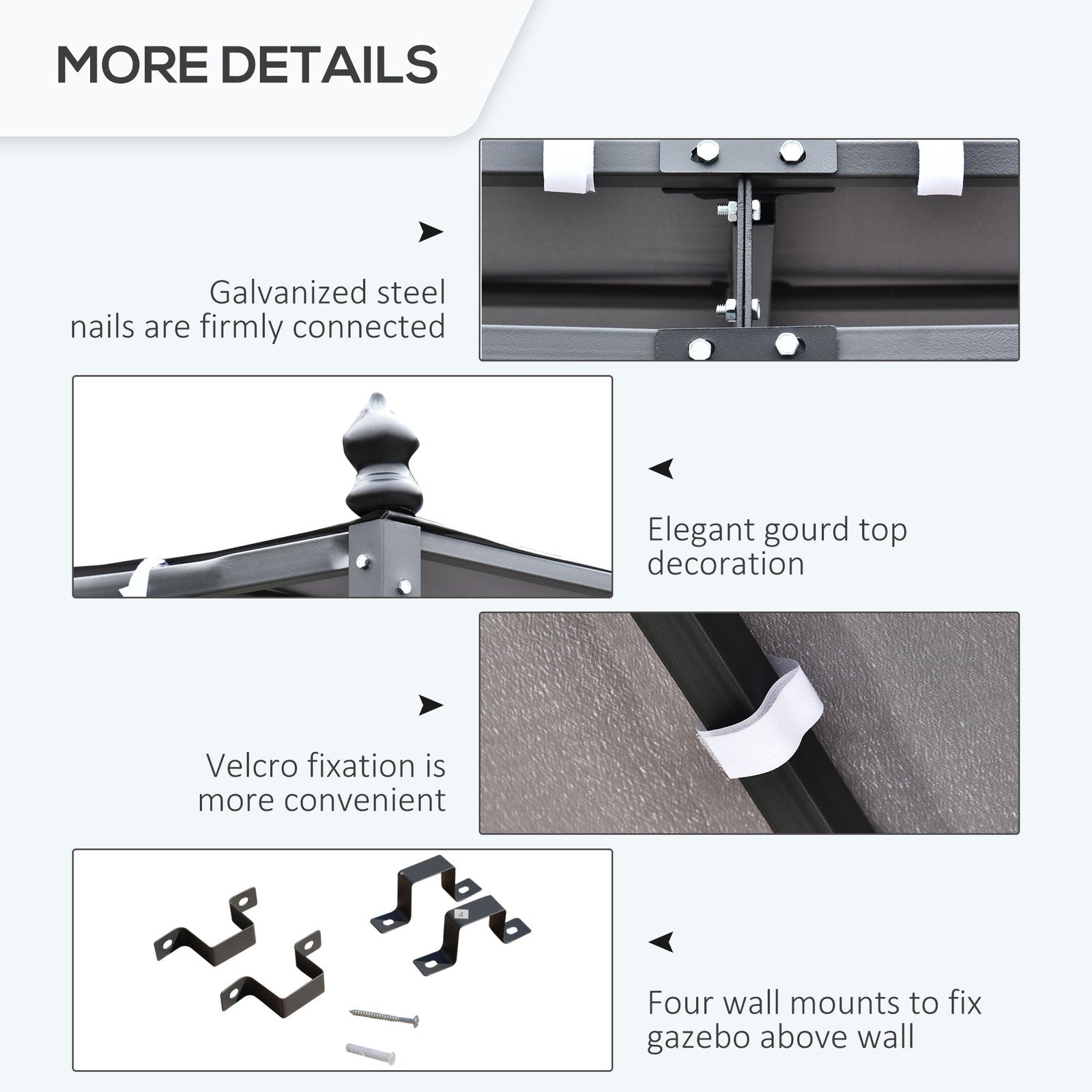 Outsunny 4 X 3 Meters Canopy Metal Wall Gazebo Awning Garden Marquee Shelter Door Porch - Grey