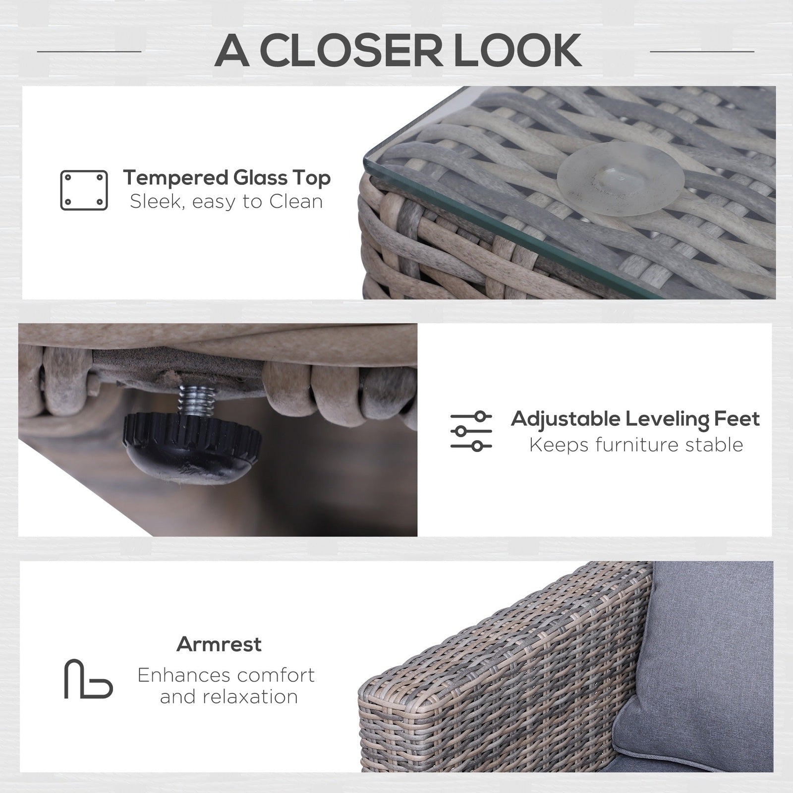 Outsunny 5 Pcs Rattan Garden Furniture Set W/ Tall Glass-Top Table Aluminium Frame Plastic Wicker Thick Soft Cushions Comfortable Outdoor Balcony Home Sofa - Brown
