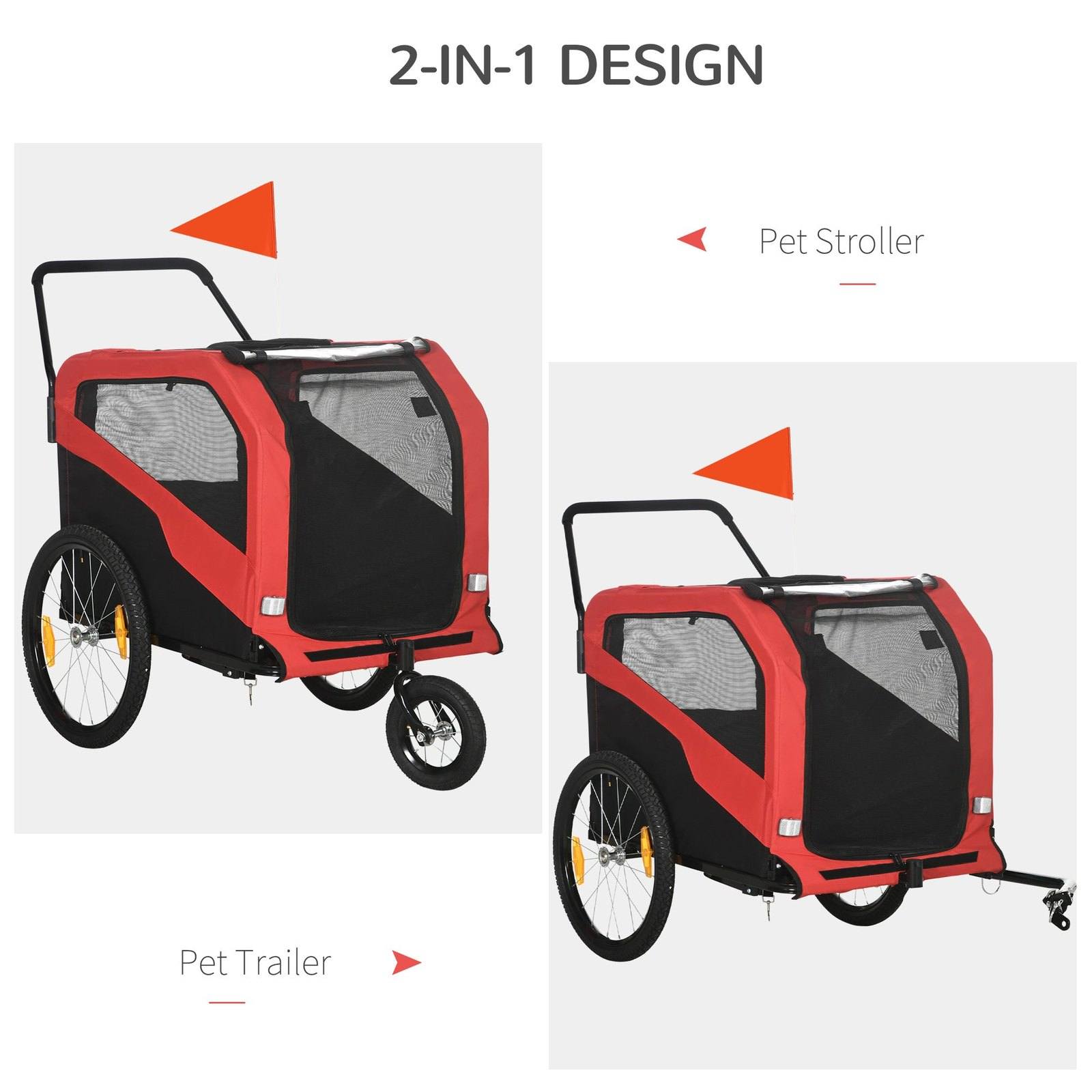 PawHut 2 in 1 Dog Bike Trailer Pet Stroller for Large Dogs with Hitch